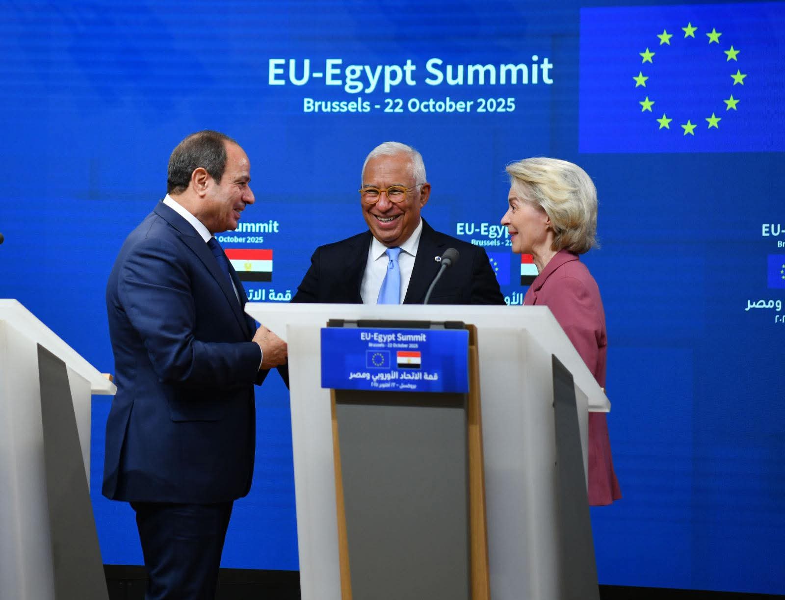 شارك السيد الرئيس عبد الفتاح السيسي في القمة المصرية الأوروبية الأولى التي انعقدت اليوم بمقر المجلس الأوروبي في العاصمة البلجيكية بروكسل، حيث ترأس الوفد المصري المشارك في أعمال القمة الذي ضم كلا من السيد الدكتور بدر عبد العاطي وزير الخارجية والهجرة وشئون المصريين بالخارج، والسيدة الدكتورة رانيا المشاط وزيرة التخطيط والتنمية الاقتصادية والتعاون الدولي، والسيد المهندس حسن الخطيب وزير الاستثمار والتجارة الخارجية، وترأس الجانب الأوروبي كل من السيد أنطونيو كوستا رئيس المجلس الأوروبي، والسيدة أورسولا فون دير لاين رئيسة المفوضية الأوروبية.