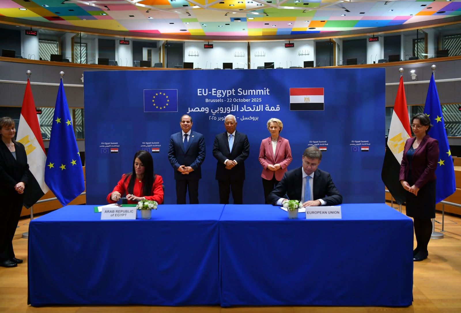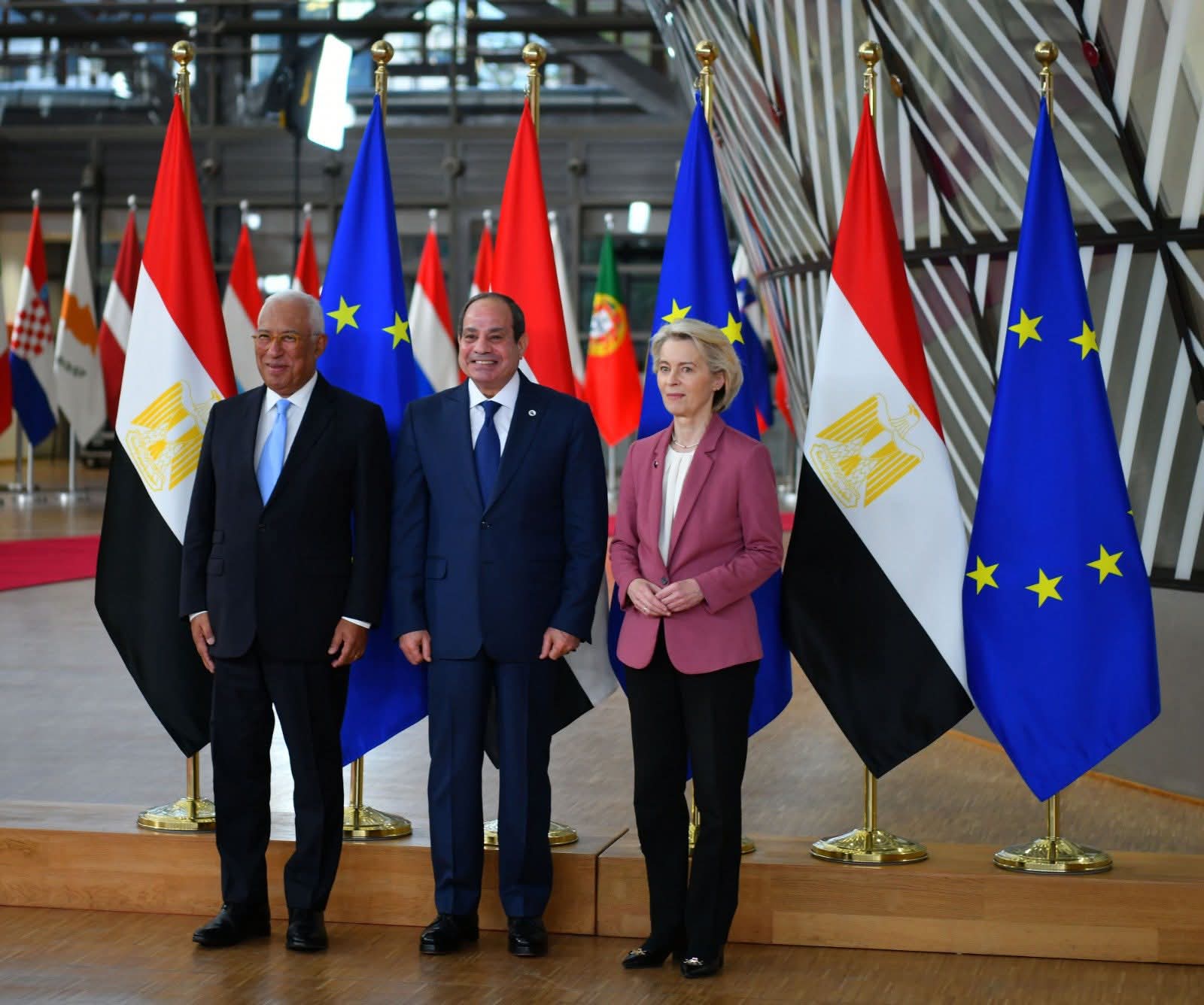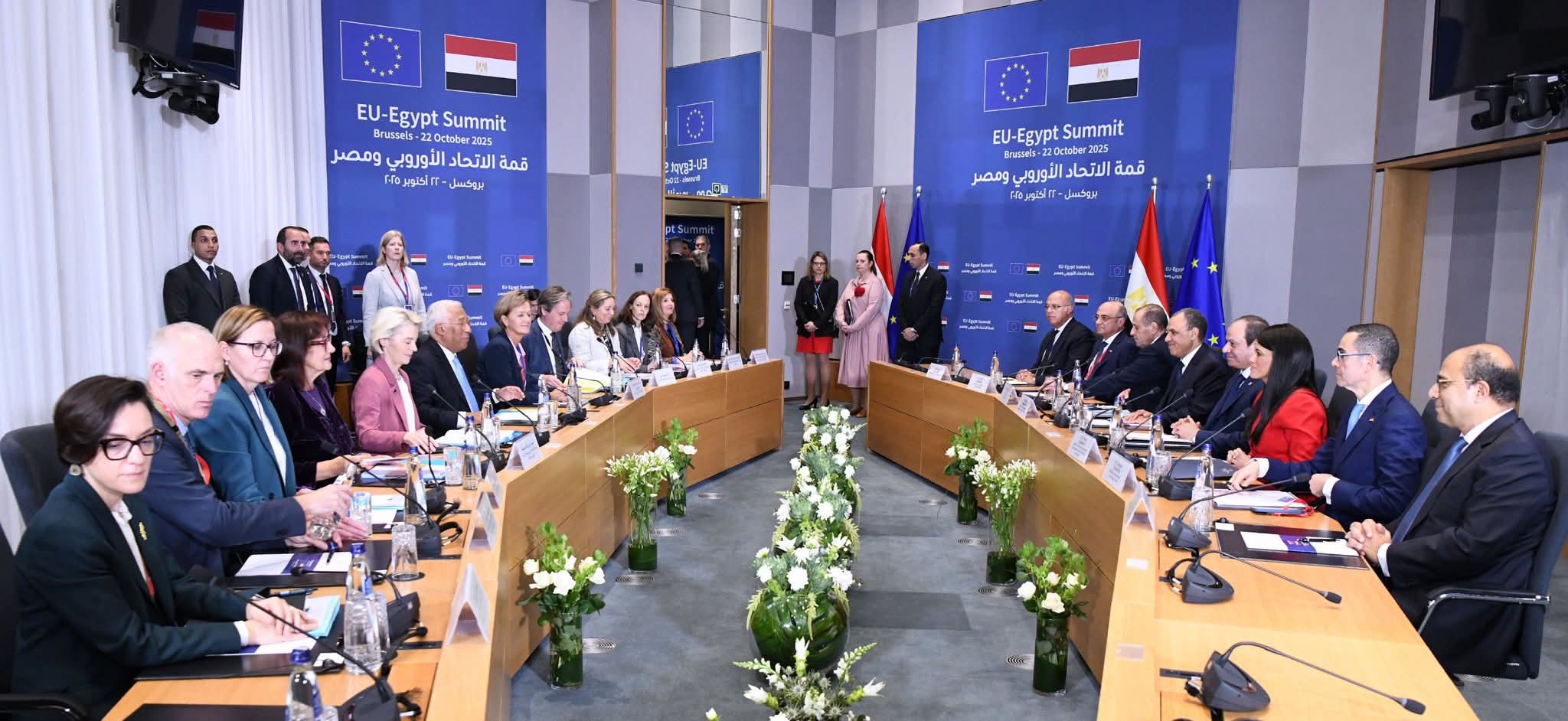 شارك السيد الرئيس عبد الفتاح السيسي في القمة المصرية الأوروبية الأولى التي انعقدت اليوم بمقر المجلس الأوروبي في العاصمة البلجيكية بروكسل، حيث ترأس الوفد المصري المشارك في أعمال القمة الذي ضم كلا من السيد الدكتور بدر عبد العاطي وزير الخارجية والهجرة وشئون المصريين بالخارج، والسيدة الدكتورة رانيا المشاط وزيرة التخطيط والتنمية الاقتصادية والتعاون الدولي، والسيد المهندس حسن الخطيب وزير الاستثمار والتجارة الخارجية، وترأس الجانب الأوروبي كل من السيد أنطونيو كوستا رئيس المجلس الأوروبي، والسيدة أورسولا فون دير لاين رئيسة المفوضية الأوروبية.