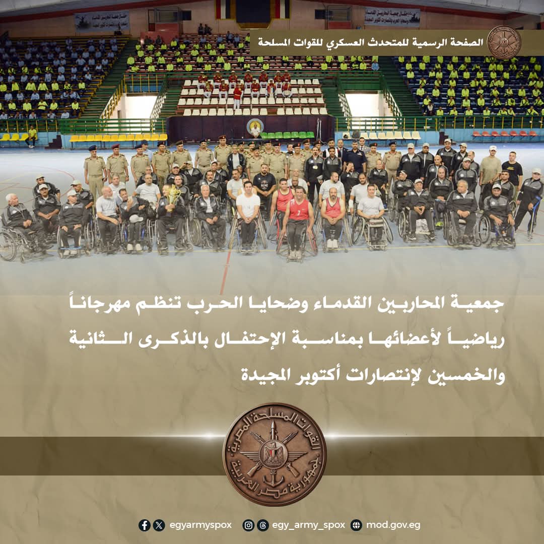 فى إطار إحتفالات مصر والقوات المسلحة بالذكرى الـثانية والخمسين لإنتصارات أكتوبر المجيدة ، نظمت جمعية المحاربين القدماء وضحايا الحرب مهرجاناً رياضياً على ملاعب جهاز الرياضة للقوات المسلحة .