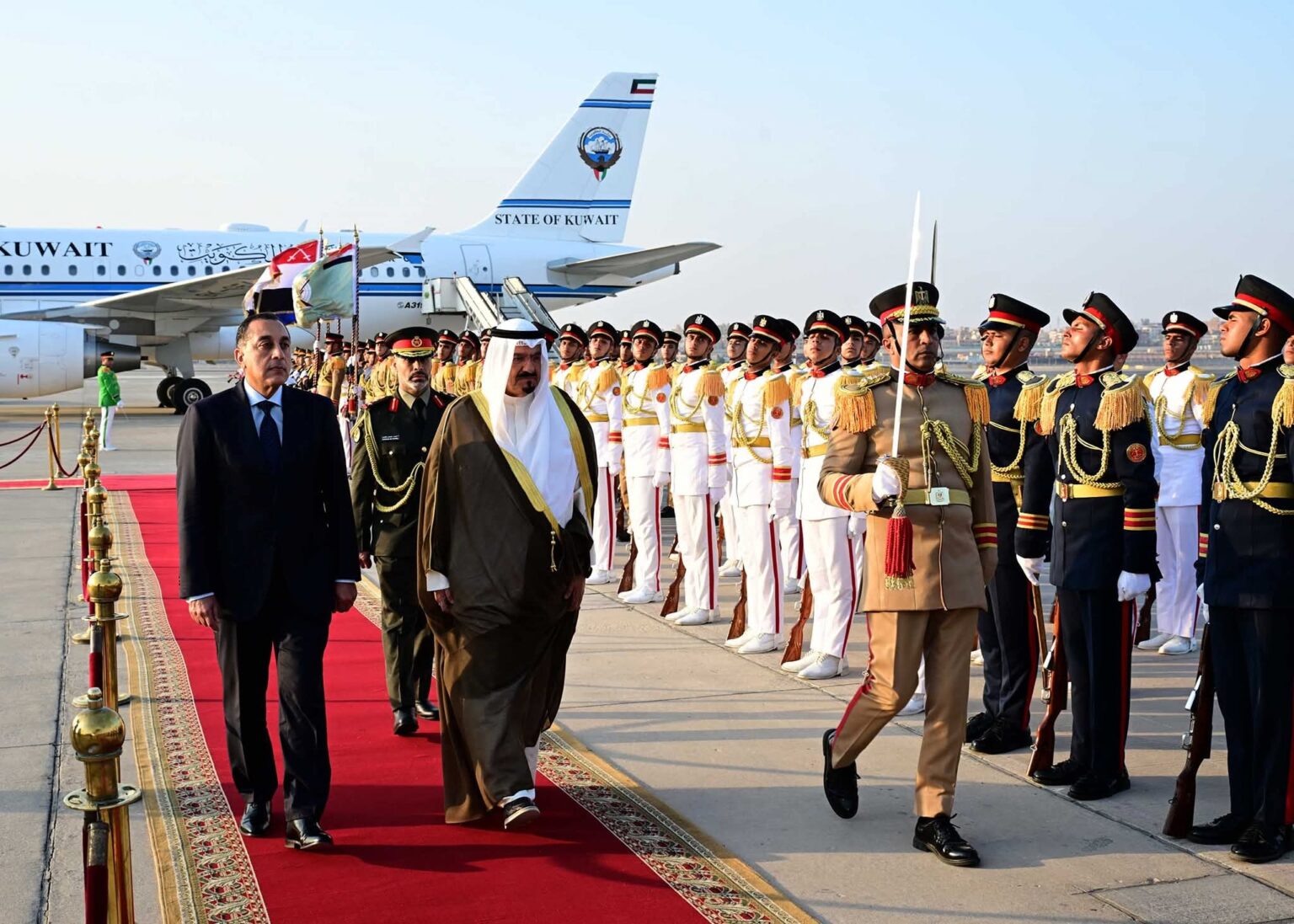 ولدى وصوله مطار القاهرة الدولي، أُقيمت مراسم استقبال رسمية لسمو الشيخ أحمد عبد الله الأحمد الصباح، رئيس مجلس الوزراء الكويت والوفد المرافق له، وشهدت مراسم الاستقبال عزف السلاميْن الوطنيين لجمهورية مصر العربية ودولة الكويت الشقيقة، أعقبه استعراض حرس الشرف، وذلك بحضور المهندس/ حسن الخطيب، وزير الاستثمار والتجارة الخارجية، والسفير/ غانم صقر على شاهين الغانم، سفير دولة الكويت لدى مصر.