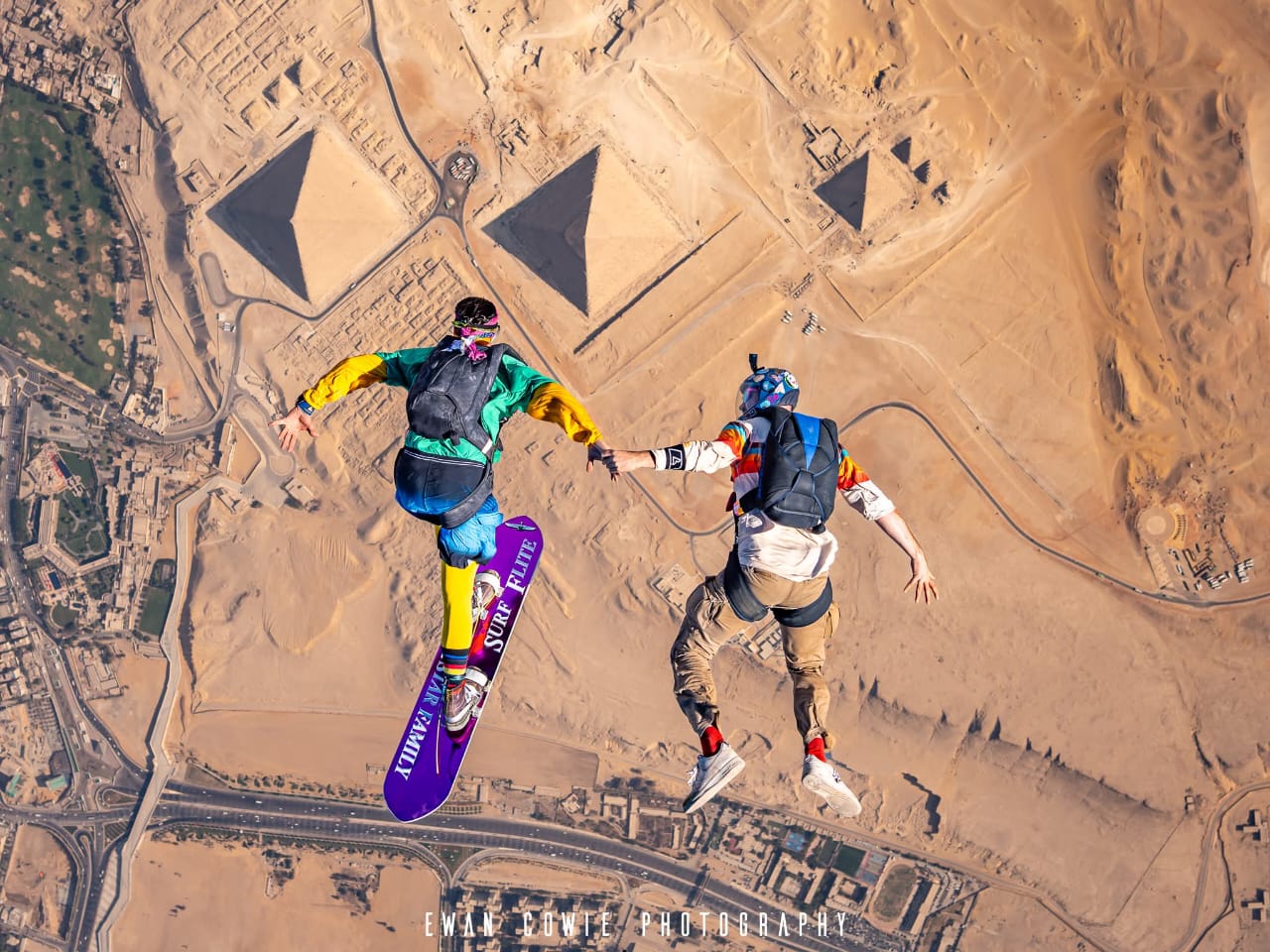 وزارة الشباب والرياضة : تزامناً مع احتفالات مصر بافتتاح المتحف الكبير 1350 قفزة على سفح الاهرامات في مهرجان القفز الحر بالمظلات “Jump Like a Pharaoh Vol.8”