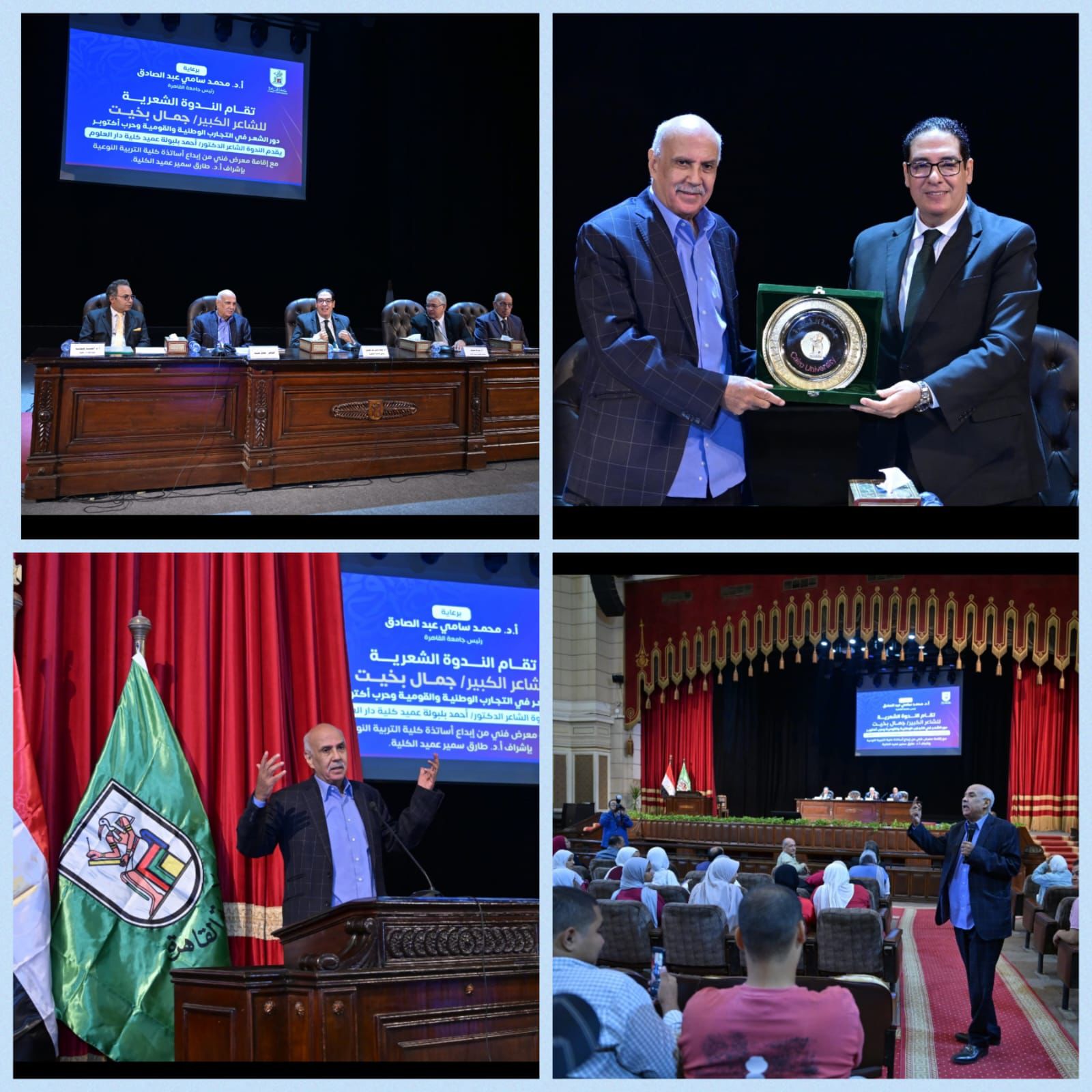 في ختام احتفالات جامعة القاهرة بالذكرى ٥٢ لانتصارات أكتوبر المجيدة تنظيم ندوة حول دور الشعر فى التجارب الوطنية والقومية وحرب أكتوبر للشاعر جمال بخيت