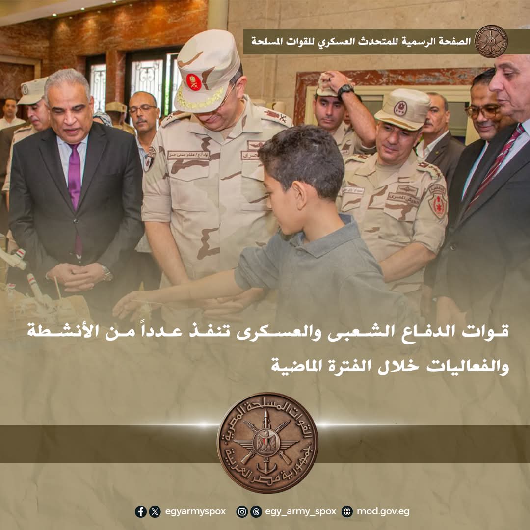 وخلال تلك الفعاليات نقل اللواء أح / هشام حسنى حسن قائد قوات الدفاع الشعبى والعسكرى تحيات وتقدير الفريق أول / عبد المجيد صقر القائد العام للقوات المسلحة وزير الدفاع والإنتاج الحربى والفريق / أحمد خليفة رئيس أركان حرب القوات المسلحة للحضور ، مؤكداً حرص القوات المسلحة على توعية الشباب المصرى بحجم التحديات الراهنة وإرتباطها بالمتغيرات المستمرة على الصعيدين الدولى والإقليمى ، فضلاً عن دور الدولة المصرية فى مواجهة تلك التحديات وتوفير الحياة الكريمة للمواطنين .