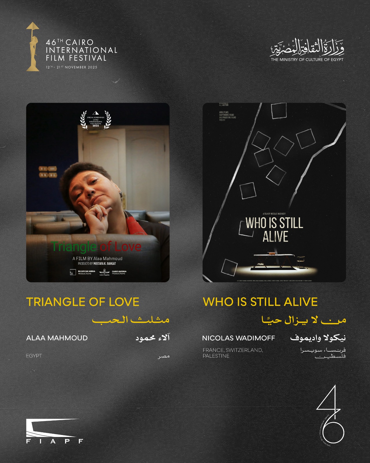 مهرجان القاهرة السينمائى يعلن عن القائمة النهائية لبرنامج أفلام العروض الخاصة في دورته الـ46