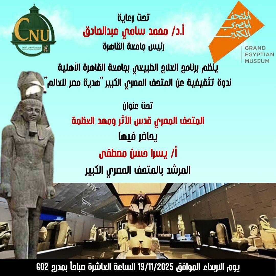 تنظيم محاضرة تاريخية بجامعة القاهرة للدكتور أحمد غنيم حول “المتحف المصري الكبير وتعزيز الهوية الوطنية”