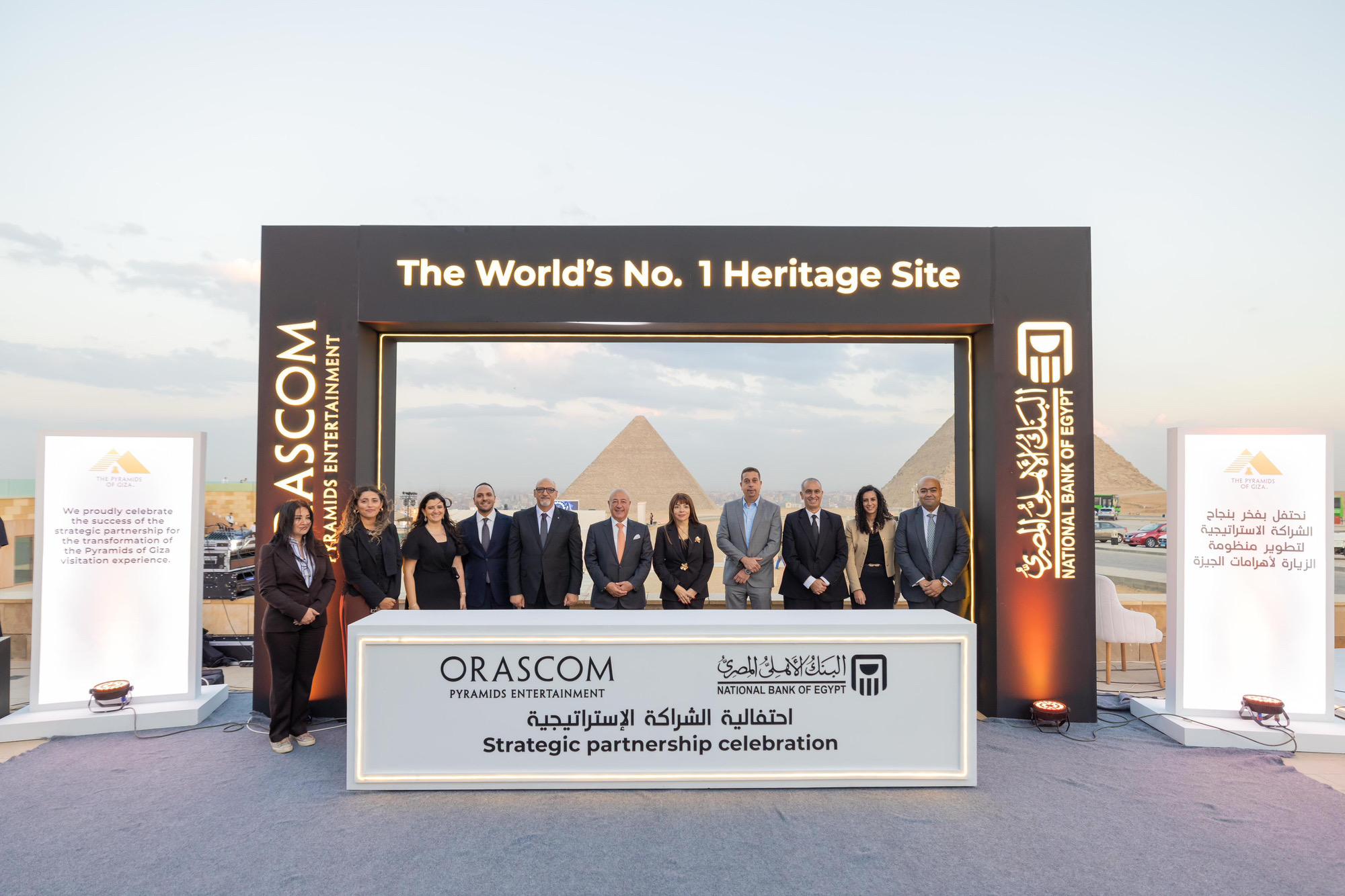 جدد البنك الأهلي المصري بروتوكول التعاون المبرم مع شركة أوراسكوم بيراميدز (OPE) – المسؤولة عن إدارة وتشغيل خدمات الزائرين بمنطقة أهرامات الجيزة – ضمن برنامج التحول الشامل لمنطقة الزيارة بهضبة الأهرامات بالجيزة، أحد أبرز وأهم المشاريع التاريخية والسياحية والثقافية في مصر والعالم، بهدف تقديم وتطوير منظومة الخدمات البنكية والمدفوعات الإلكترونية داخل المنطقة الأثرية، وذلك تأكيدًا على دوره كشريك استراتيجي في رعاية وتطوير منطقة الأهرامات منذ عام 2021.