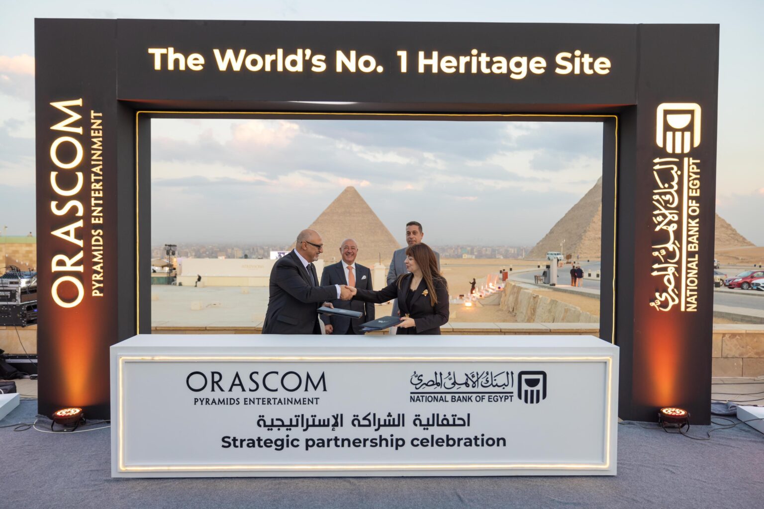 من جانبه، صرّح المهندس عمرو جزارين، رئيس مجلس الإدارة لشركة أوراسكوم بيراميدز (OPE): تجديد الشراكة يعكس ثقة البنك الأهلي المصري في رؤيتنا وطموحنا المشترك لتعزيز مكانة تجربة الزيارة بهضبة الأهرامات بالجيزة، وتقديم خدمات عالية الجودة تتماشى مع المعايير الدولية، مع الحرص على الاستدامة والحفاظ على التراث. نتطلع إلى مرحلة تنفيذية تفيض بالابتكار وتوفير تجربة استثنائية للزائرين أكثر وأكثر.