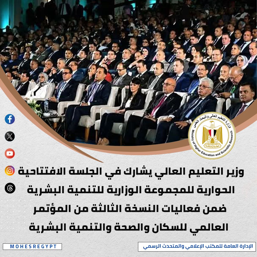 شارك الدكتور أيمن عاشور وزير التعليم العالي والبحث العلمي، في جلسة وزارية ضمن النسخة الثالثة من المؤتمر العالمي للسكان والصحة والتنمية البشرية (PHDC’25)، وخلال فعاليات المؤتمر قدم الدكتور أيمن عاشور عرضًا تفصيليًا بعنوان: “التعلم بلا حدود” كرؤية تحولية للتعليم العالي في مصر، حيث اشتمل العرض على استعراض “استراتيجية تطوير التعليم العالي نحو تنمية بشرية مستدامة مواكبة للنمو السكاني والاقتصادي”، والذي تضمن الأنشطة الاقتصادية في الأقاليم الجغرافية السبعة، وتحول الجامعات المصرية إلى جامعات الجيل الرابع، وتسليط الضوء على الإستراتيجية الوطنية للتعليم العالي والبحث العلمي لتحقيق رؤية مصر للتنمية المستدامة 2030.