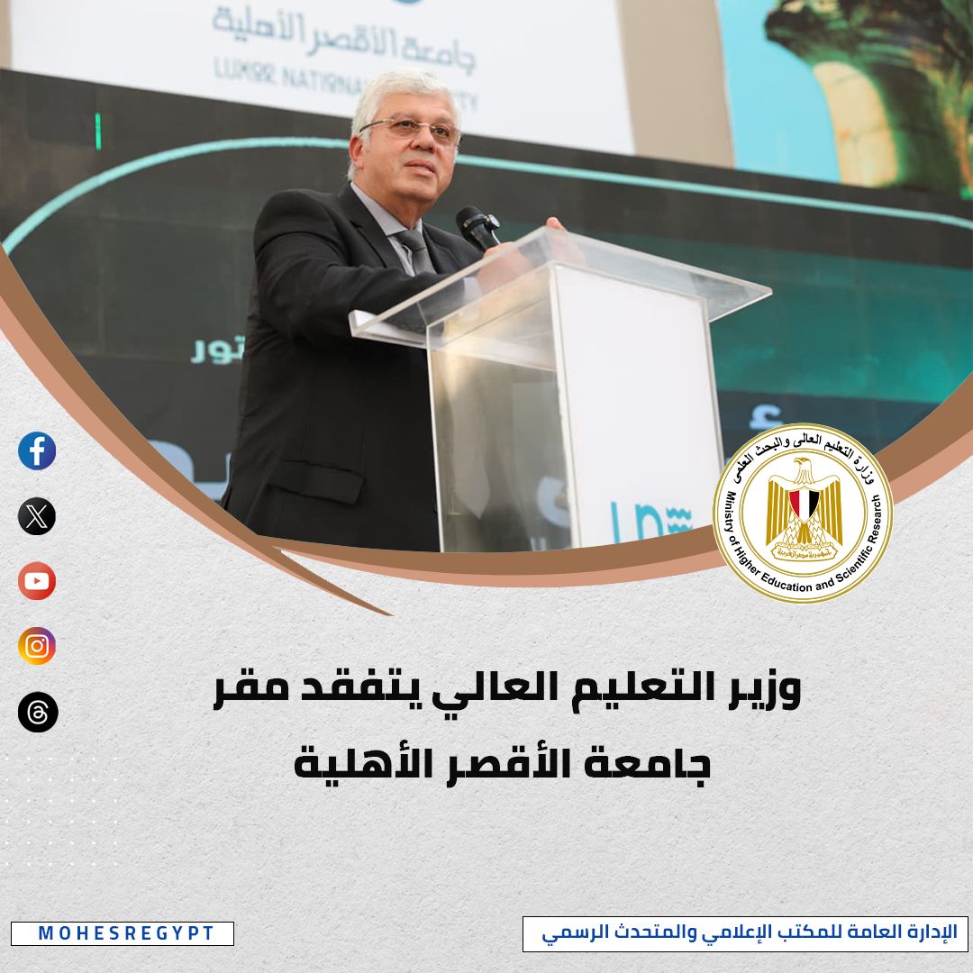 تفقد الدكتور أيمن عاشور وزير التعليم العالي والبحث العلمي، والدكتورة مايا مرسي وزيرة التضامن الاجتماعي، والمهندس عبدالمطلب عمارة محافظ الأقصر، والدكتورة صابرين عبدالجليل رئيسة جامعة الأقصر والمكلفة بتسيير بأعمال جامعة الأقصر الأهلية، والدكتور ماهر مصباح أمين مجلس الجامعات الأهلية، مقر جامعة الأقصر الأهلية، وخلال الزيارة، تفقد الوزيران مباني جامعة الأقصر الأهلية، والتي تتكون من مبنى أكاديمي في المرحلة الأولى، بمساحة إجمالية تبلغ 12893 متر مربع، ويتكون المبنى من دور أرضي ودورين متكررين، وساحة انتظار، ويضم المبنى مدرجات وقاعات دراسية ومعامل ومكاتب إدارية لأعضاء هيئة التدريس والهيئة المعاونة وعيادة طبية وقاعة سيمينار ومركز اختبارات إلكترونية ومطعم ومتحف، وأشار الوزير إلى أن جامعة الأقصر الأهلية تعد إحدى الجامعات الواعدة التي تحمل رسالة علمية وتنموية سامية، فهي لا تقتصر على تخريج كوادر مؤهلة علميًا، بل تعمل على خدمة المجتمع المحلي في محافظات الصعيد، عبر شراكات فاعلة مع مؤسسات الدولة والقطاع الخاص، وتقديم برامج تطبيقية في مجالات السياحة والآثار، واللغات، والحاسبات والذكاء الاصطناعي، والفنون والتصميم، بما يسهم في إعداد جيل من الخريجين يمتلك المهارة والمعرفة والقدرة على المنافسة في سوق العمل.