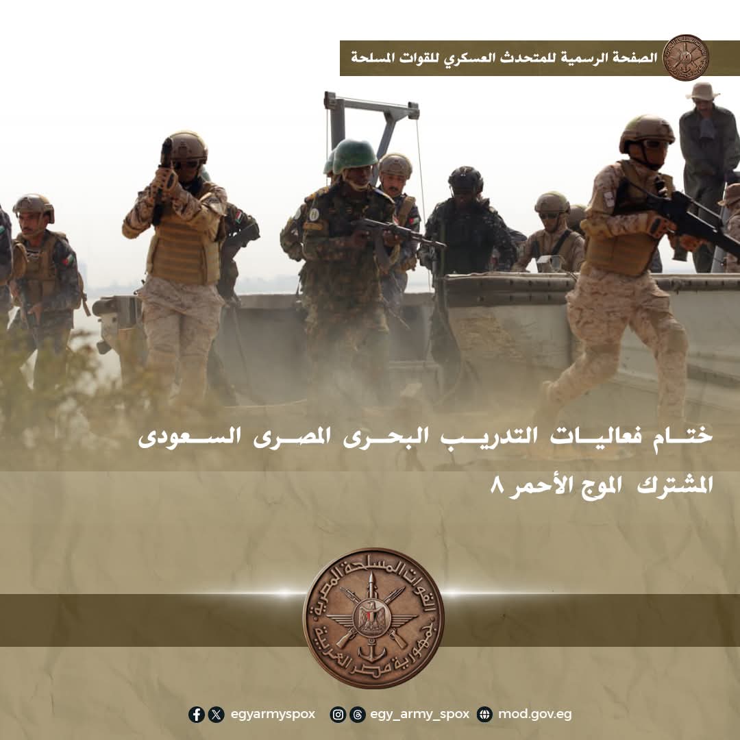 أختتمت فعاليات التدريب البحرى المصرى السعودى المشترك ( الموج الأحمر 8 ) والذى تم تنفيذه على مدار عدة أيام بالمملكة العربية السعودية بمشاركة عناصر من القوات البحرية لكلٍ من مصر والسعودية والأردن والسودان واليمن وجيبوتى .