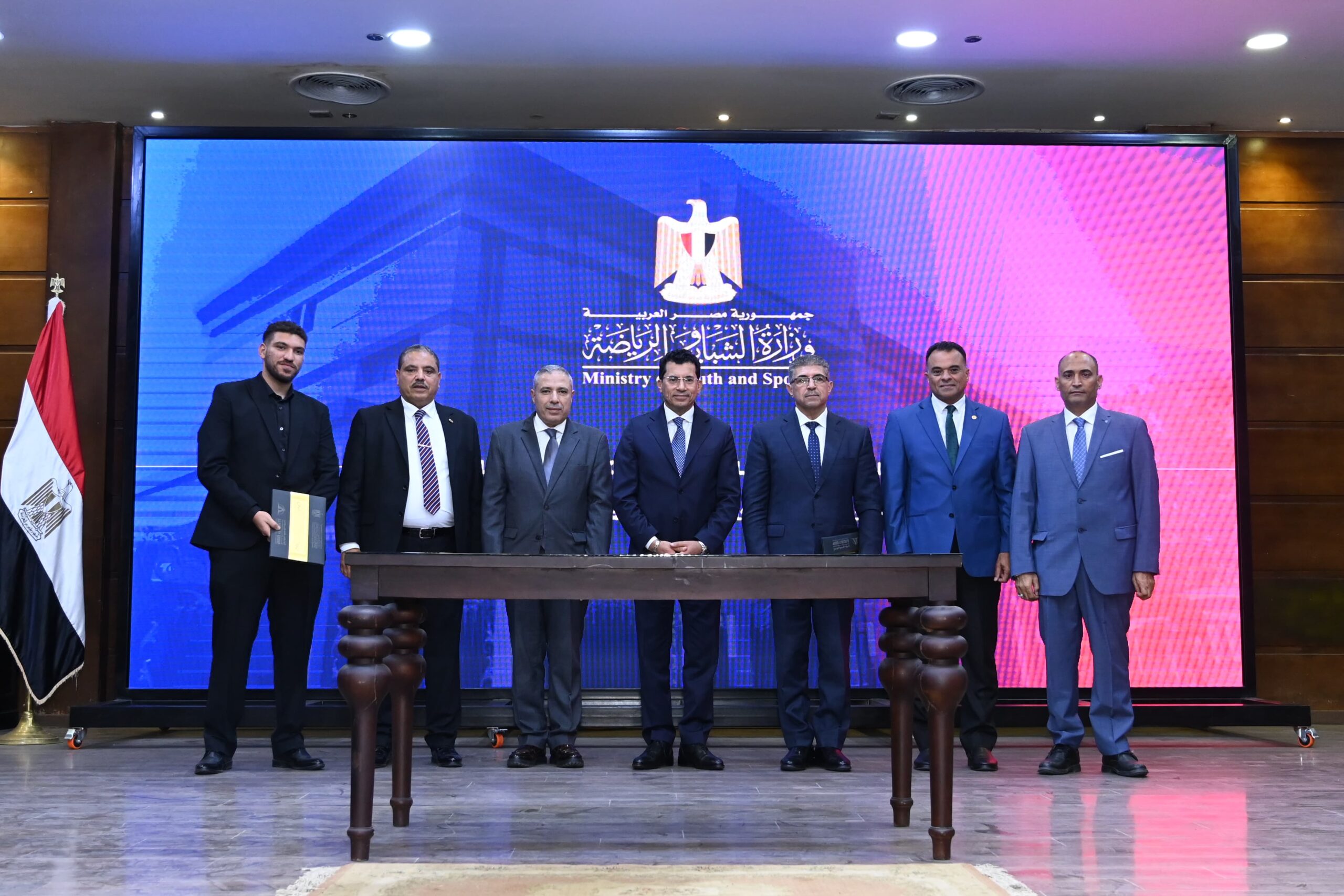 وقع على عقد الاتفاق من جانب وزارة الشباب والرياضة اللواء عبد الرحمن شلش، رئيس الإدارة المركزية للمدن الشبابية، فيما وقع على الاتفاق من جانب مجموعة الحصري الأستاذ هشام الحصري، رئيس مجلس إدارة مجموعة الحصري جروب.