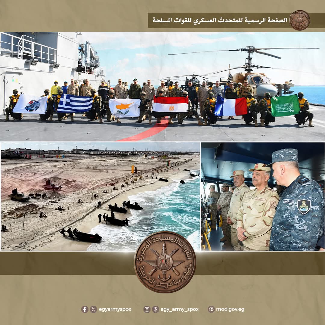 شهد الفريق أول / عبدالمجيد صقر القائد العام للقوات المسلحة وزير الدفاع والإنتاج الحربى المرحلة الرئيسية للتدريب المشترك ” ميدوزا – 14 ” ، بحضور الفريق / أحمد خليفة رئيس أركان حرب القوات المسلحة والفريق أول / ديميتريوس خوبيس رئيس هيئة الأركان اليونانية ، والفريق / إيمانويل ثيودورو قائد الحرس الوطنى القبرصى ، واللواء بحرى الركن / منصور بن سعود الجعيد قائد الأسطول الغربى السعودى وقادة الأفرع الرئيسية وعدد من كبار قادة القوات المسلحة المصرية والدول المشاركة بالتدريب وعدد من الملحقين العسكريين والإعلاميين ودارسى الكليات والمعاهد العسكرية ، والذى إستمرت فعالياته لعدة أيام بنطاق مسرح عمليات البحر المتوسط وقاعدة محمد نجيب العسكرية وعدد من القواعد الجوية بجمهورية مصر العربية بمشاركة عناصر القوات البحرية والجوية والقوات الخاصة المصرية واليونانية والقبرصية والسعودية والفرنسية .