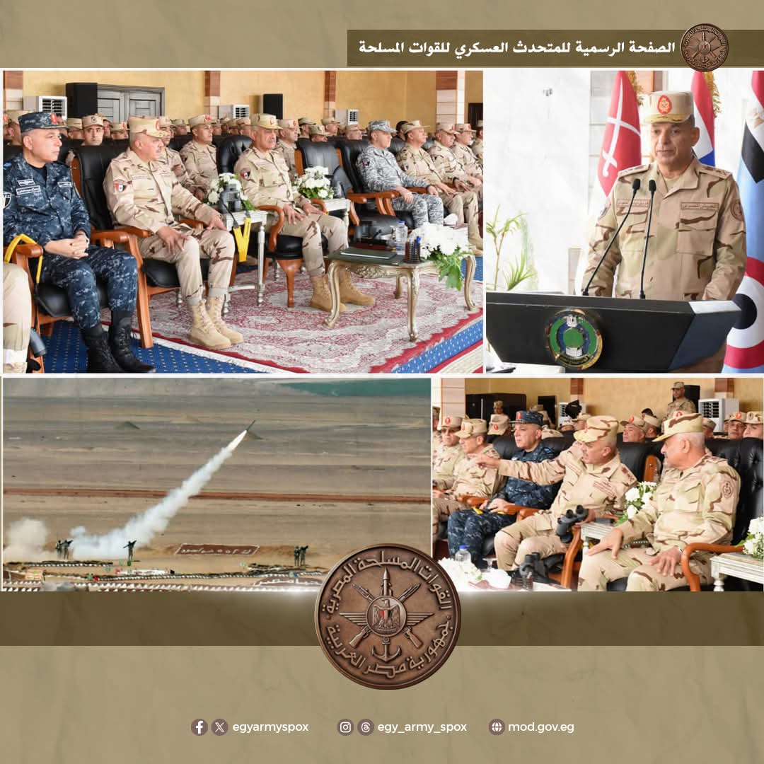 General Abdel Mageed Saqr, Commander-in-Chief of the Armed Forces and Minister of Defense and Military Production, attended the main phase of missile firing exercises conducted by elements of the Air Defense Forces. The exercise was held in the presence of Lieutenant General Ahmed Khalifa, Chief of Staff of the Armed Forces, senior commanders of the main branches, and a number of Armed Forces leaders.