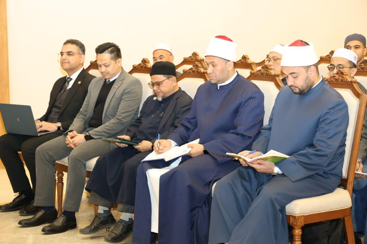 وفي كلمته، رحب الوزير بالوفد الماليزي، معبّرًا عن تقديره العميق لدولة ماليزيا، ومؤكدًا عمق العلاقات التي تجمع البلدين، وأهمية تبادل الخبرات في دعم منهج الوسطية وترسيخ الفكر المستنير. وخلال محاضرته، أوضح الفرق بين التعليم والتدريب، مبينًا أن التعليم يقدّم المعرفة، فيما يهدف التدريب إلى تحويل المعرفة إلى مهارات عملية قابلة للتطبيق؛ وبعد اجتماع التعليم والتدريب لا بد من إردافهما بالجانب الوجداني الذي يتمثل في الشغف بطلب العلم والحرص على الفهم والتواضع للعلم والتمرس والتدرب بحب وصبر وأناة ونية صادقة. وأشار إلى أن الأزهر الشريف دأب على منهج أعلى اسمه وشأنه ومكانته في كل أنحاء العالم حتى صار مؤتمنًا على العلم والفهم الديني المستنير، ويتمثل هذا المنهج في تعليم طلابه اثني عشر علمًا شرعيًا تُعدُّ الحد الأدنى اللازم لصناعة العالم والمفتي، موضحًا أن إتقان هذه العلوم كان في الماضي معيارًا للحصول على شهادة العالمية.