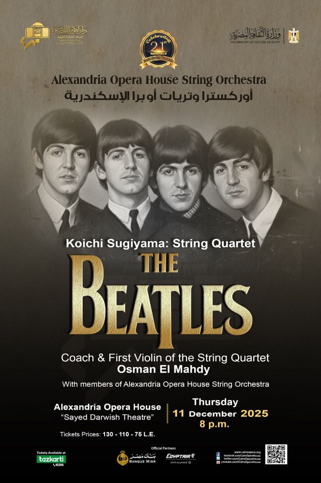 وتريات الأسكندرية تستعيد ذكريات موسيقى البيتلز بسيد درويش