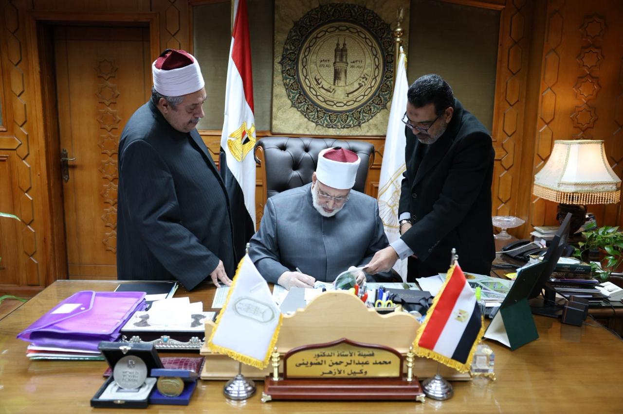 اعتمد فضيلة أ.د/ محمد الضويني، وكيل الأزهر الشريف، نتيجة الشهادة الثانوية لمعاهد فلسطين الأزهرية (الدور الأول)، للطلاب الذين لم يتمكنوا من أداء الامتحانات بسبب العدوان، وذلك عن العامين الدراسيين (2023/2024) و(2024/2025)، بنسبة نجاح عامة ٩٧.٤٪، بحضور فضيلة الشيخ أيمن عبدالغني، رئيس قطاع المعاهد الأزهرية، والأستاذ/ خالد إبراهيم، رئيس كنترول الشهادة الثانوية الأزهرية.