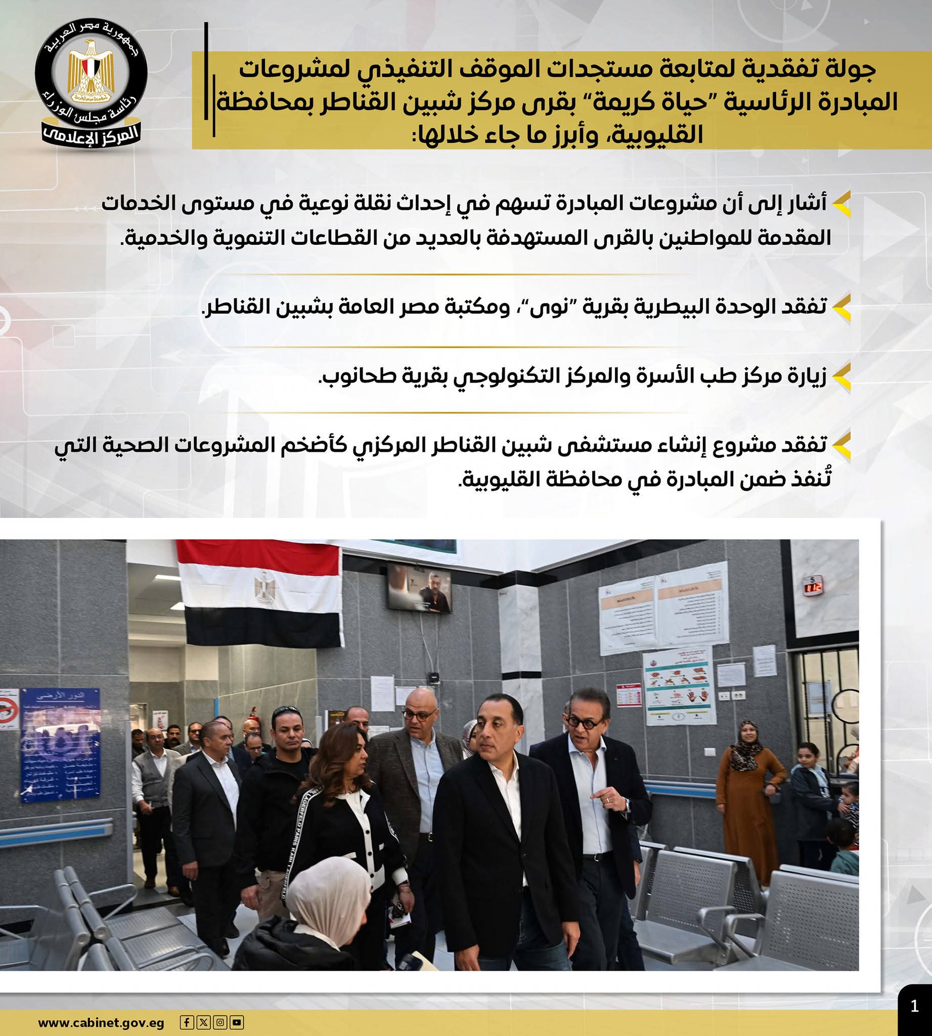 – رئيس الوزراء يتفقد مشروعات مبادرة “حياة كريمة” بشبين القناطر ويؤكد: المبادرة تُحدث نقلة نوعية في مستوى الخدمات بالقرى المستهدفة