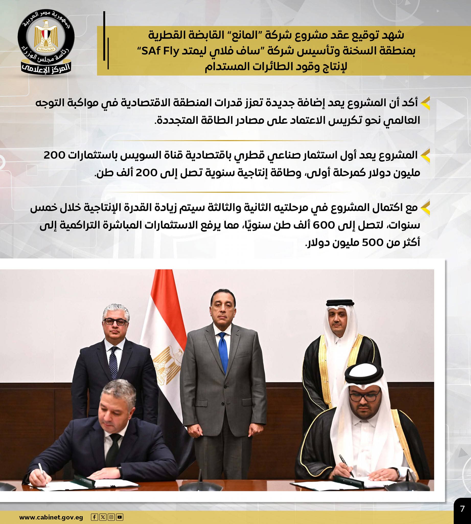 – باستثمارات 200 مليون دولار.. توقيع عقد مشروع شركة “المانع” القطرية لإنتاج وقود الطائرات المستدام كأول استثمار صناعي قطري بـ “اقتصادية قناة السويس”