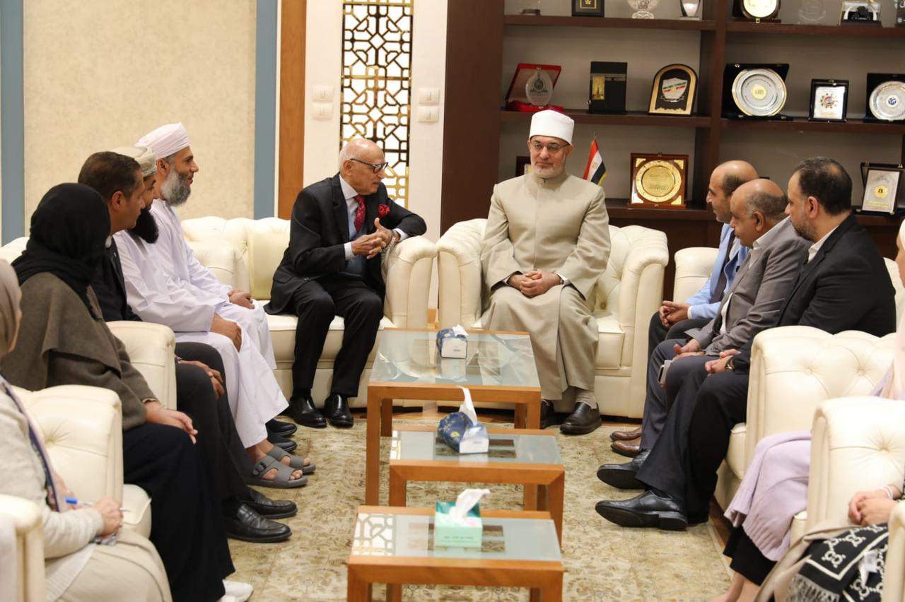 استقبل فضيلة أ.د. نظير محمد عياد، مفتي الجمهورية ورئيس الأمانة العامة لدور وهيئات الإفتاء في العالم، وفدًا من وزارة الأوقاف والشئون الدينية بسلطنة عُمان، برئاسة الدكتور طلال بن خليفة، مدير دائرة الشؤون الإسلامية، إلى جانب ممثلة عن منظمة الأمم المتحدة للطفولة “اليونيسيف” بسلطنة عمان، بحضور الدكتور جمال أبو السرور، مدير مركز البحوث السكانية بجامعة الأزهر، وممثل عن المجلس القومي للطفولة والأمومة في مصر، وذلك للاطلاع على تجربة دار الإفتاء المصرية في تدريب وبناء قدرات المفتين.