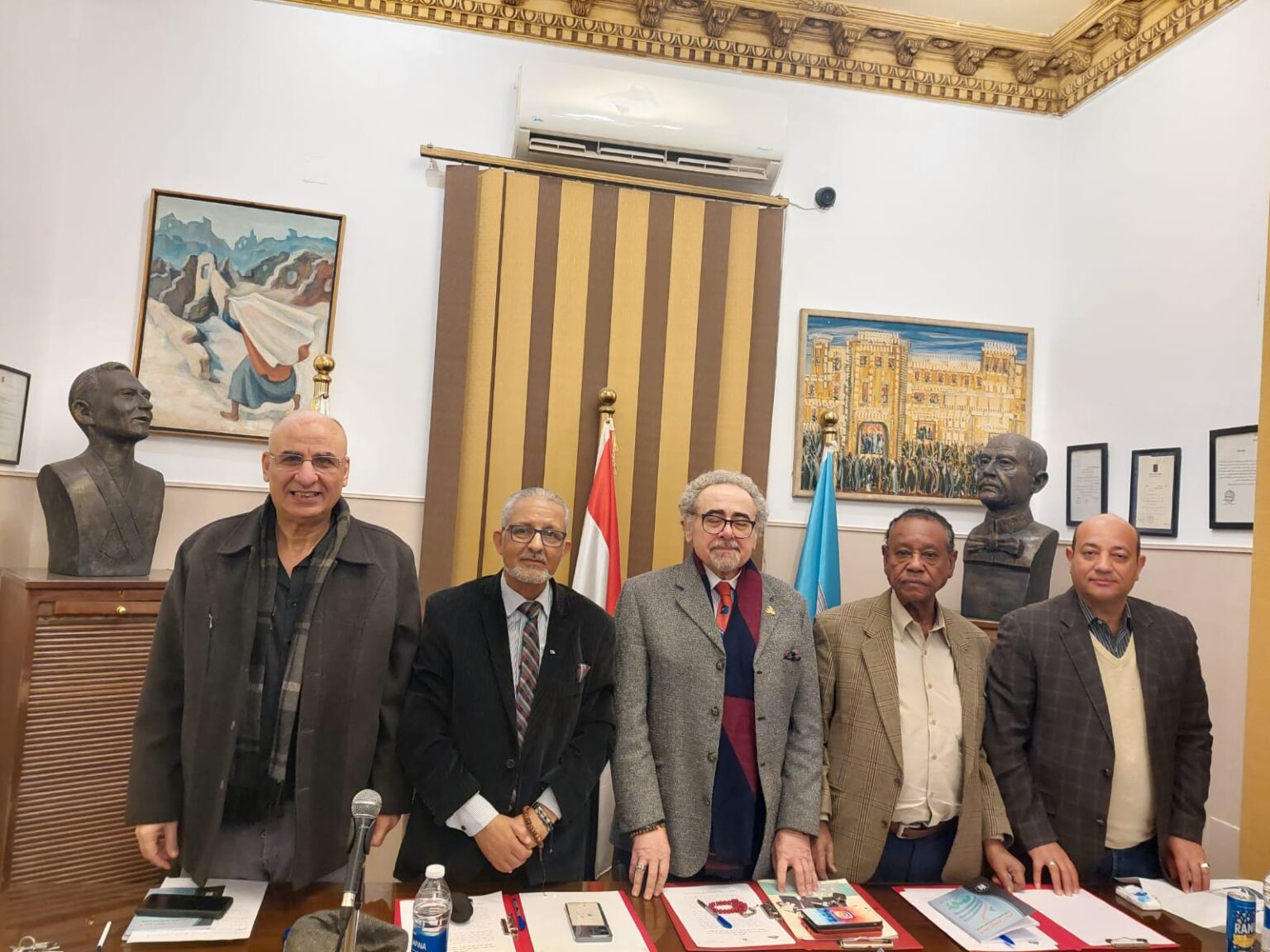 برئاسة الشاعر والمفكر الكبير الدكتور علاء عبد الهادي، الأمين العام للاتحاد العام للأدباء والكتاب العرب، ونقيب كتاب مصر وحضور كل من: الأديب يوسف شقرة نائب الأمين العام للاتحاد العام للأدباء والكتاب العرب، و الفريق الدكتور عمر قدور نائب الأمين العام للاتحاد العام للأدباء والكتاب العرب.