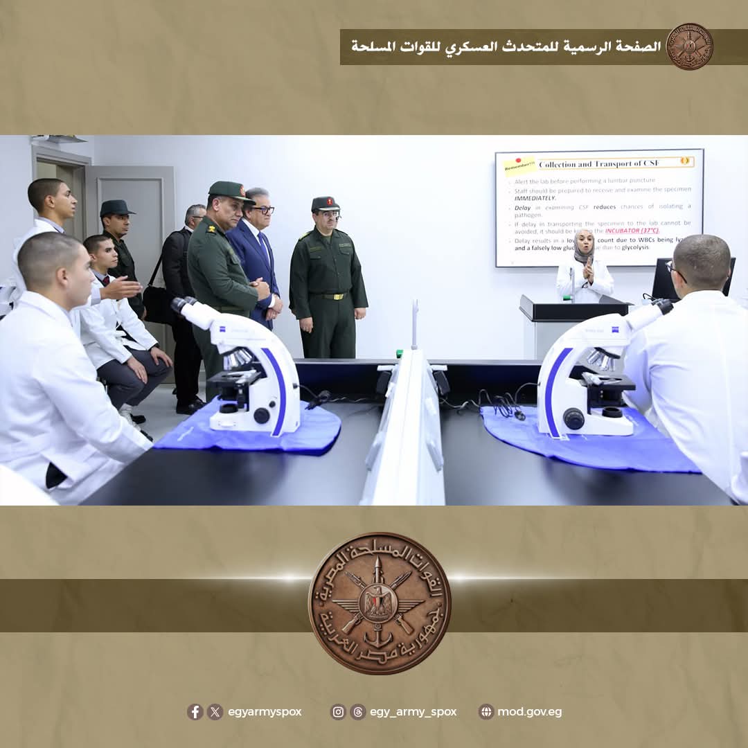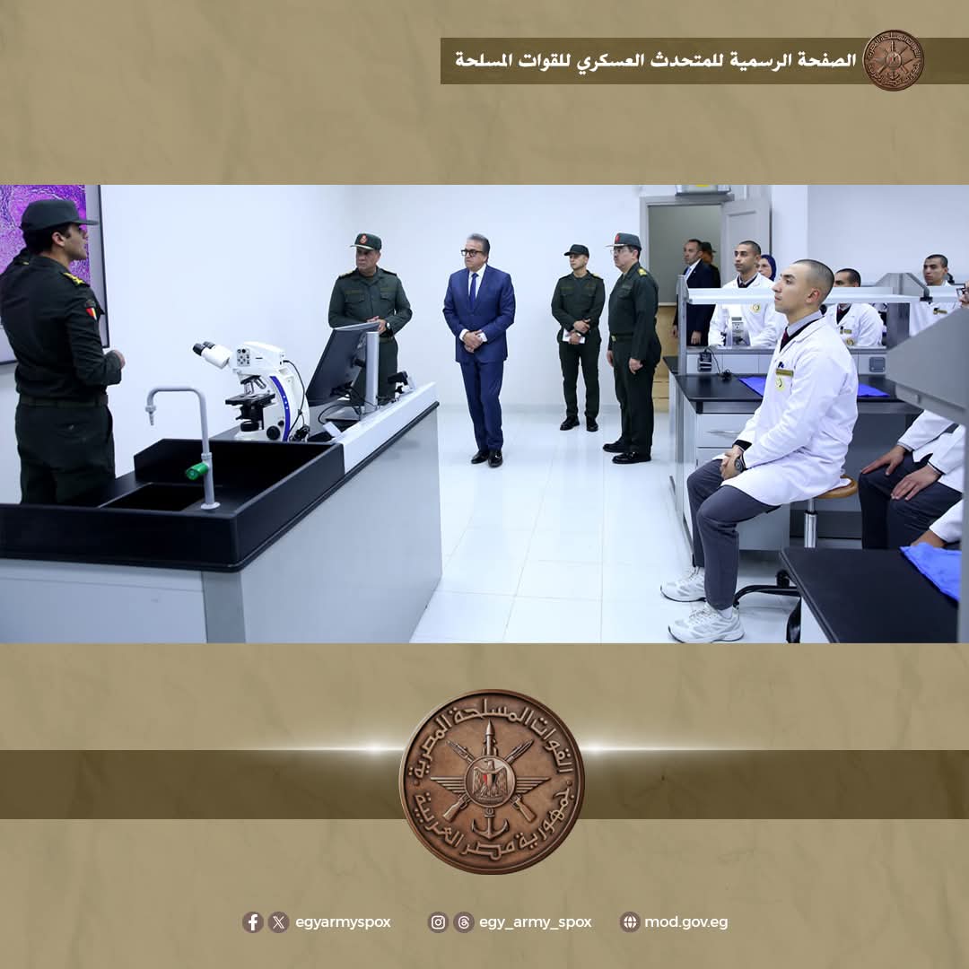 وأكد الدكتور / خالد عبد الغفار خلال الزيارة أن كلية الطب بالقوات المسلحة تمثل نموذجاً فريداً يجمع بين الإنضباط العسكرى والتفوق العلمى ، مشيداً بما شاهده خلال الزيارة من منظومة عمل متطورة ورؤى علمية تسهم فى إعداد أجيال جديدة من الأطباء المتميزين فى مختلف التخصصات الطبية .
