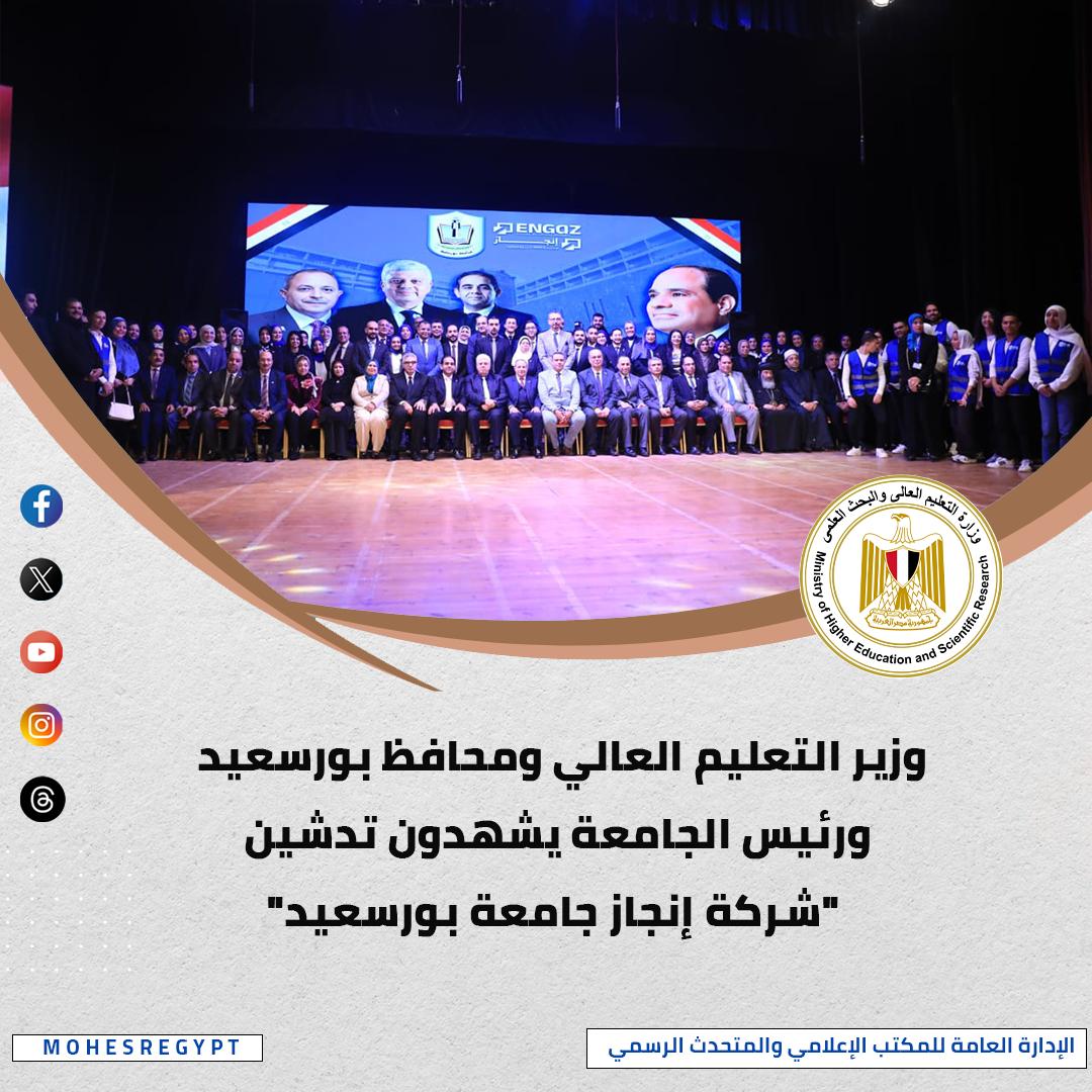 شهد الدكتور أيمن عاشور وزير التعليم العالي والبحث العلمي، تدشين شركة إنجاز جامعة بورسعيد، وأكد الدكتور أيمن عاشور أهمية تنمية الجامعات لمواردها وتحقيق الاستغلال الأمثل لأصول الجامعة وبنيتها التحتية، مستعرضًا جهود الوزارة في دعم جهود الاستثمار في التعليم العالي والبحث العلمي، وذلك بما يتماشى مع تحقيق أهداف الإستراتيجية الوطنية للتعليم العالي والبحث العلمي.