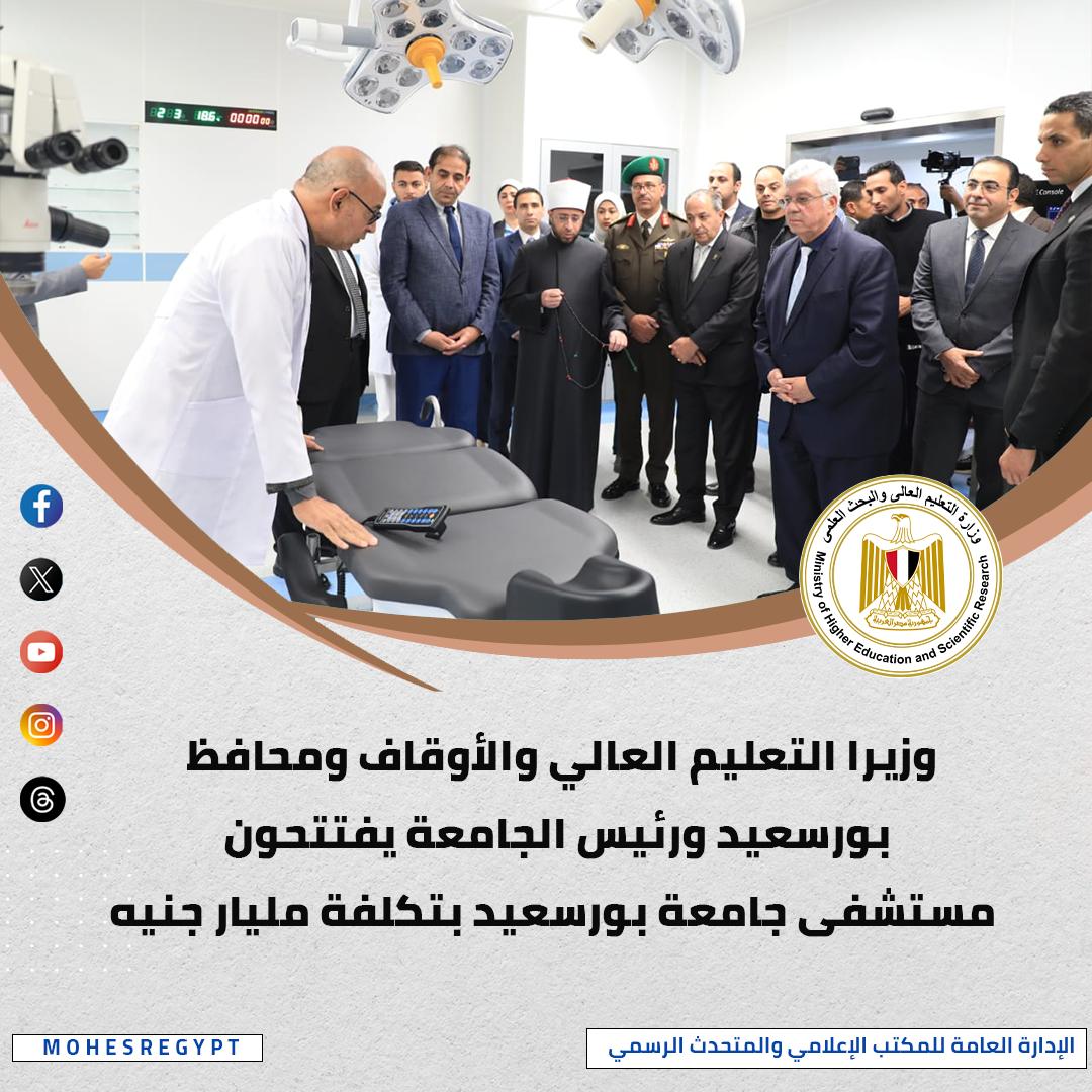 افتتح الدكتور أيمن عاشور وزير التعليم العالي والبحث العلمي، مستشفى جامعة بورسعيد، وخلال الزيارة، اطلع الوزير على منشآت مستشفى جامعة بورسعيد، الذي يمتد على مساحة إجمالية تصل إلى 36 ألف متر مربع، مع بنية إنشائية تبلغ 13.5 ألف متر مربع، ويتكون المشروع من ثلاثة مبانٍ رئيسية بارتفاع خمسة أدوار، وتم تجهيز المستشفى بـ540 سريرًا، منها 427 سريرًا للإقامة و113 سريرًا للعزل والإفاقة والعناية المركزة والطوارئ، بالإضافة إلى 16 غرفة عمليات، 31 عيادة، 6 غرف مناظير، 5 معامل، و15 غرفة أشعة، و15 قاعة محاضرات، وأكد الوزير أن قطاع الرعاية الصحية في مصر يشهد تطورًا ملحوظًا بفضل الجهود غير المسبوقة التي تبذلها الدولة المصرية لتحديث وتطوير منظومة المستشفيات الجامعية، بما يتماشى مع أحدث المعايير العالمية.