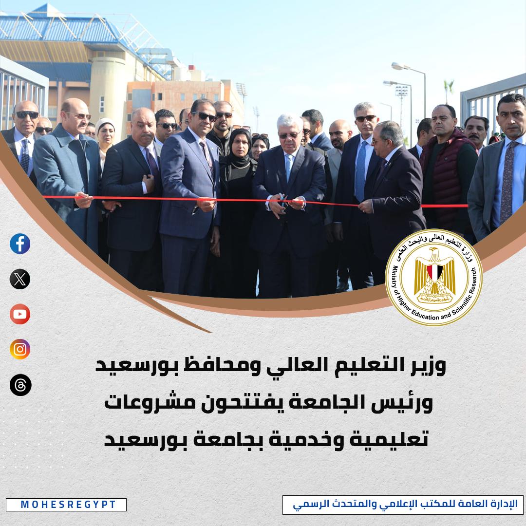 افتتح الدكتور أيمن عاشور وزير التعليم العالي والبحث العلمي، عددًا من المشروعات التعليمية والخدمية بجامعة بورسعيد، حيث افتتح الوزير أعمال تطوير مجمع حمامات السباحة الأوليمبي بكلية علوم الرياضة، بتكلفة بلغت حوالي 123,445 مليون جنيه، كما تشمل خطة التطوير رفع كفاءة وتطوير الصالة المغطاة بالكلية، والتي تُعد الأكبر من نوعها في الشرق الأوسط، إلى جانب تطوير وتجهيز 15 ملعبًا فرعيًا لمختلف الألعاب الرياضية، بما يتيح تنظيم البطولات والمعسكرات على أعلى مستوى، وكذلك تجهيز منشآت للإقامة الفندقية، استعدادًا لاستضافة المعسكرات الرياضية المحلية والدولية، كما افتتح الدكتور أيمن عاشور أعمال إتمام المرحلة الأولى من خطة التطوير الشاملة للمدن الجامعية بمدينة بورفؤاد، وافتتح الوزير أيضا المبنى التعليمي الإداري الجديد، الذي يُعد من أحدث المنشآت الجامعية.