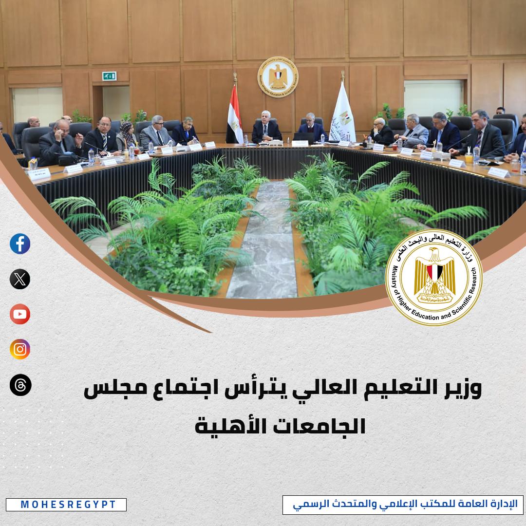 ترأس الدكتور أيمن عاشور وزير التعليم العالي والبحث العلمي، اجتماع مجلس الجامعات الأهلية، وخلال الاجتماع وافق المجلس على طلب جامعة حلوان الأهلية بتغيير مسماها إلى “جامعة العاصمة الأهلية”، كما وافق المجلس على طلب جامعة جنوب الوادي الأهلية بتغيير مسماها إلى “جامعة قنا الأهلية”، كما وافق المجلس على فتح باب التقديم للقبول والتسجيل بالفصل الدراسي الثاني للعام الجامعي 2025/2026، في حدود الأماكن الشاغرة بالجامعات التي تسمح لوائحها الداخلية بذلك، وذلك اعتبارًا من 10 يناير 2026، ولمدة أسبوعين.
