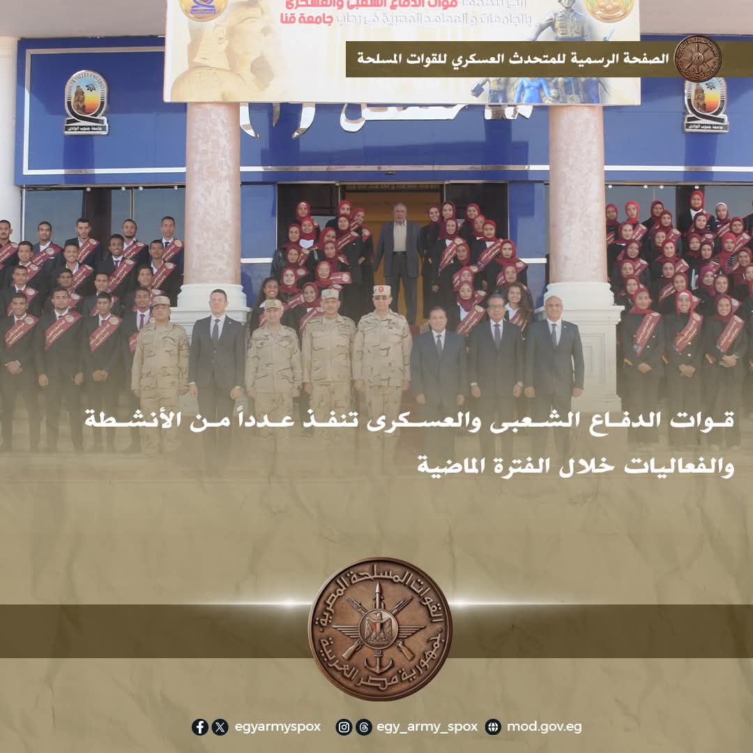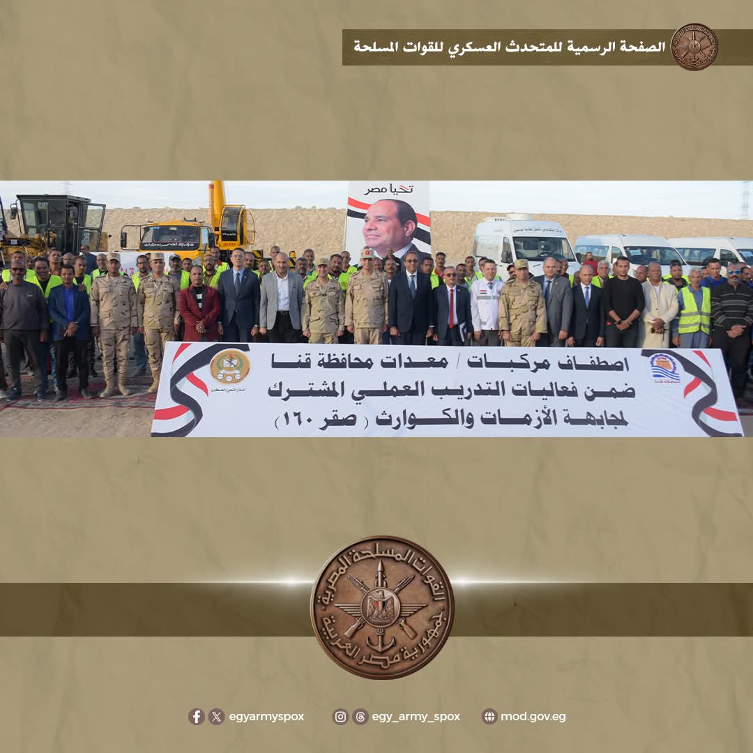 فى إطار حرص القوات المسلحة على التعاون مع المجتمع المدنى والتنسيق مع كافة أجهزة ومؤسسات الدولة نفذت قوات الدفاع الشعبى والعسكرى بالتعاون مع محافظتى سوهاج وقنا مشروعين للتدريب العملى المشترك لإدارة الأزمات والكوارث بمشاركة الأجهزة التنفيذية وذلك للوقوف على مدى الجاهزية والإستعداد لمجابهة المواقف الطارئة بإستخدام الإمكانيات المتاحة وكذا تنمية مهارات العناصر التخصصية .