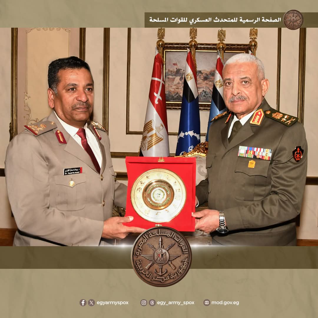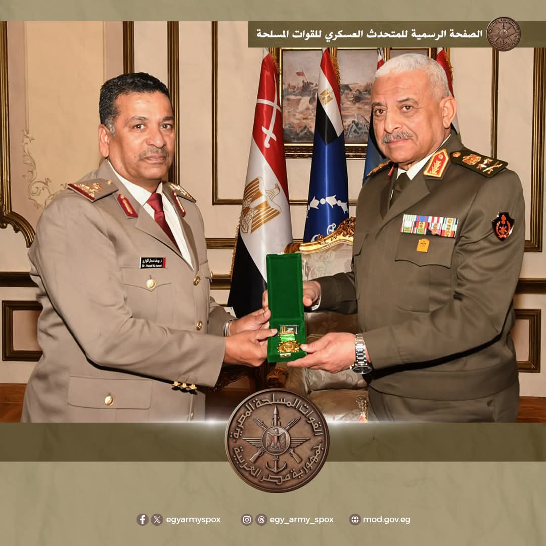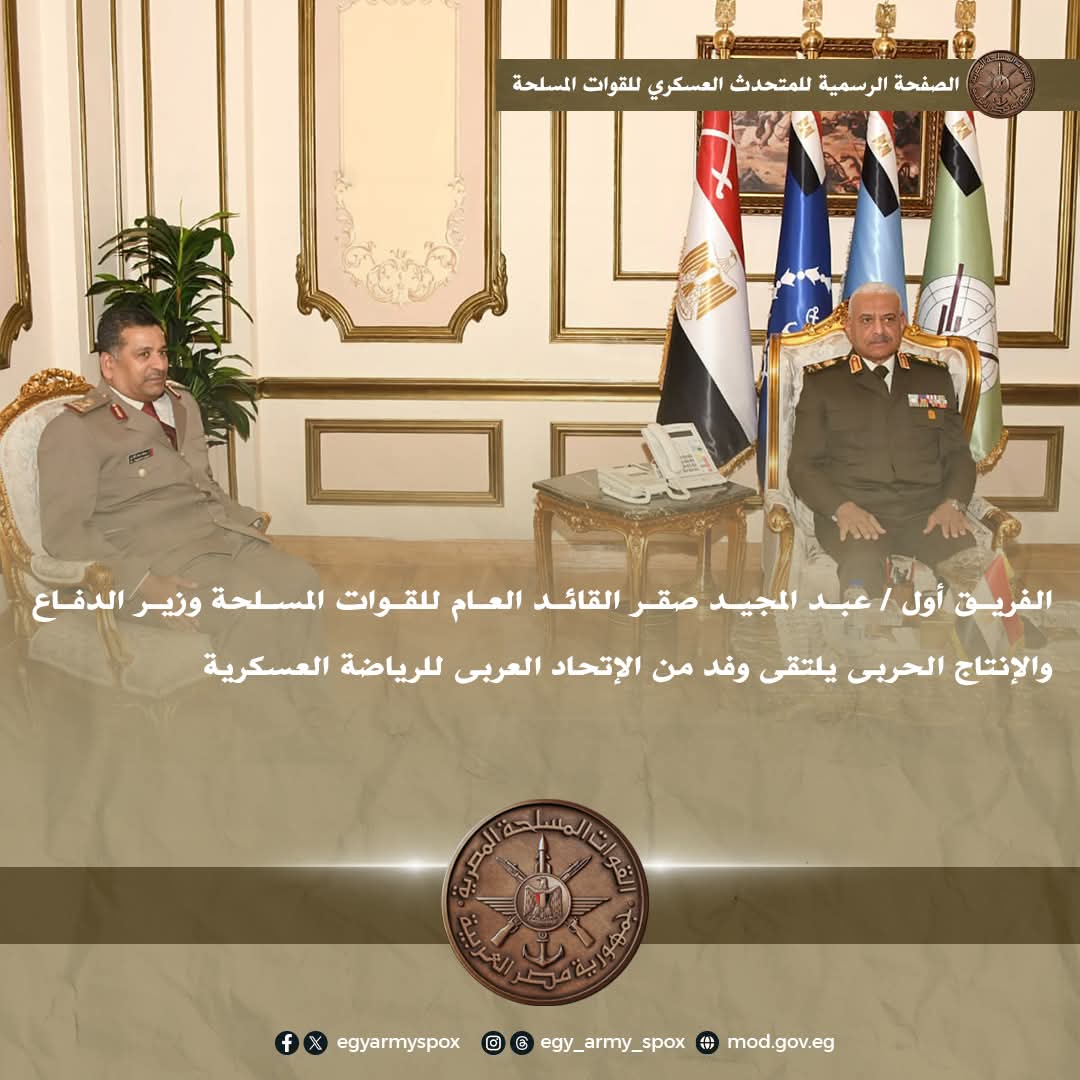 إلتقى الفريق أول / عبد المجيد صقر القائد العام للقوات المسلحة وزير الدفاع والإنتاج الحربى اللواء الركن / يوسف دسمال مبارك الكوارى رئيس الإتحاد العربى للرياضة العسكرية ، بحضور الفريق / أحمد خليفة رئيس أركان حرب القوات المسلحة وذلك بمقر الأمانة العامة لوزارة الدفاع .