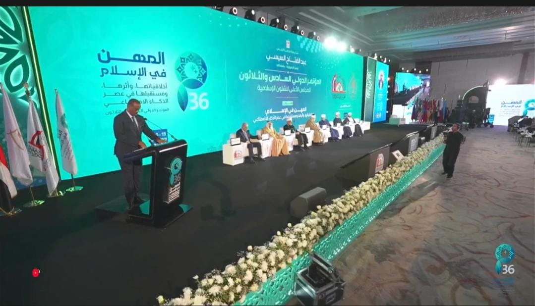 في كلمته بالمؤتمر الدولي السادس والثلاثين وزير الأوقاف الأردني : حضارة الإسلام قامت على العمل وإتقان المهن ويرفض خطاب الزهد السلبي