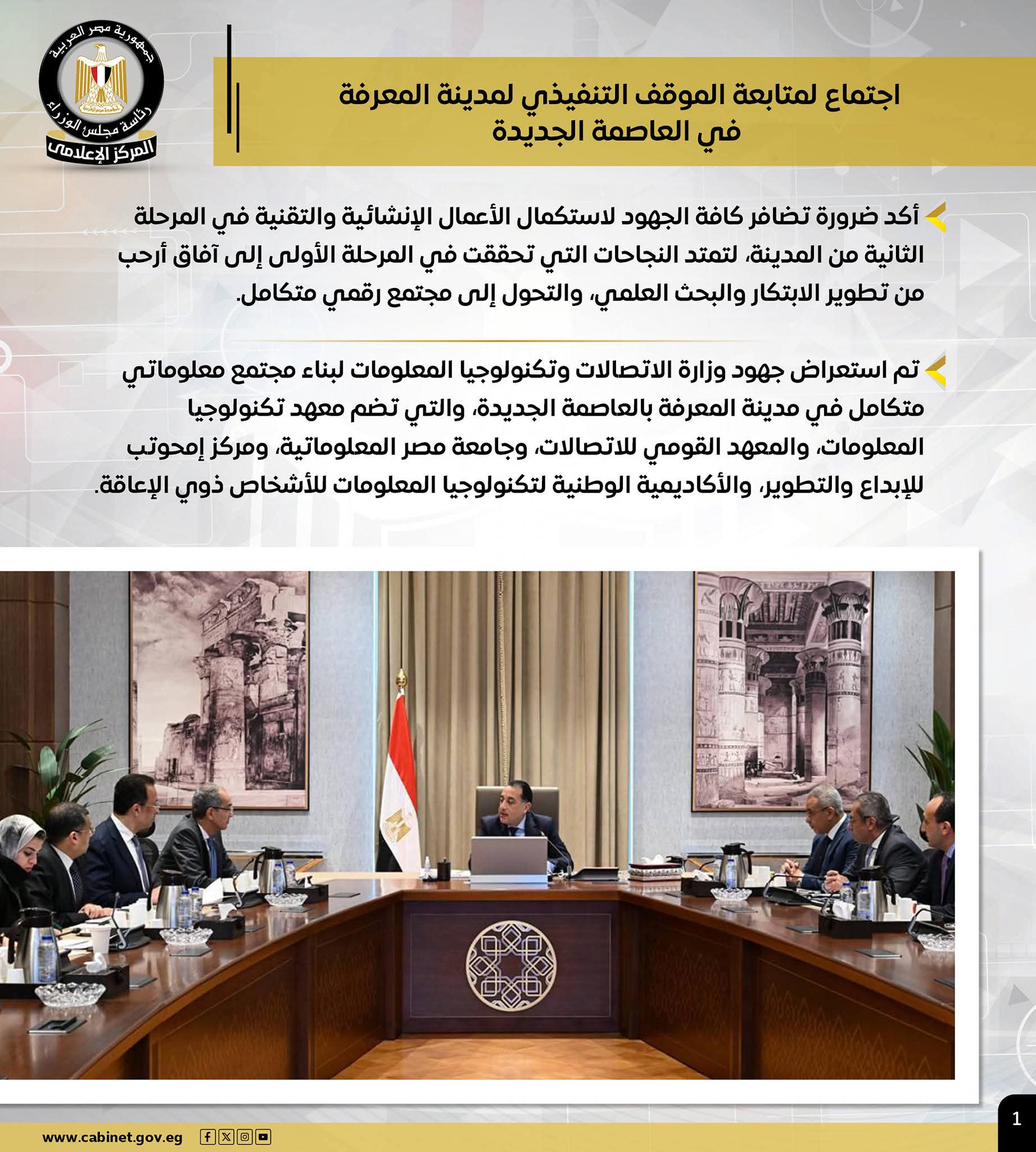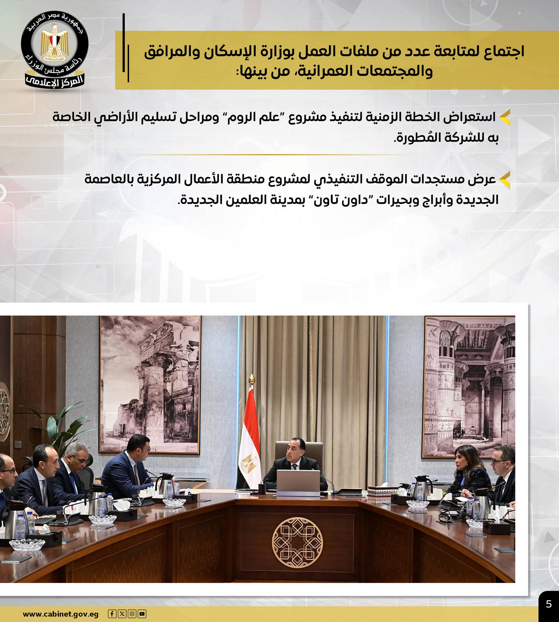 المركز الإعلامي لمجلس الوزراء يستعرض بالإنفوجراف أبرز أنشطة رئيس الوزراء هذا الأسبوع