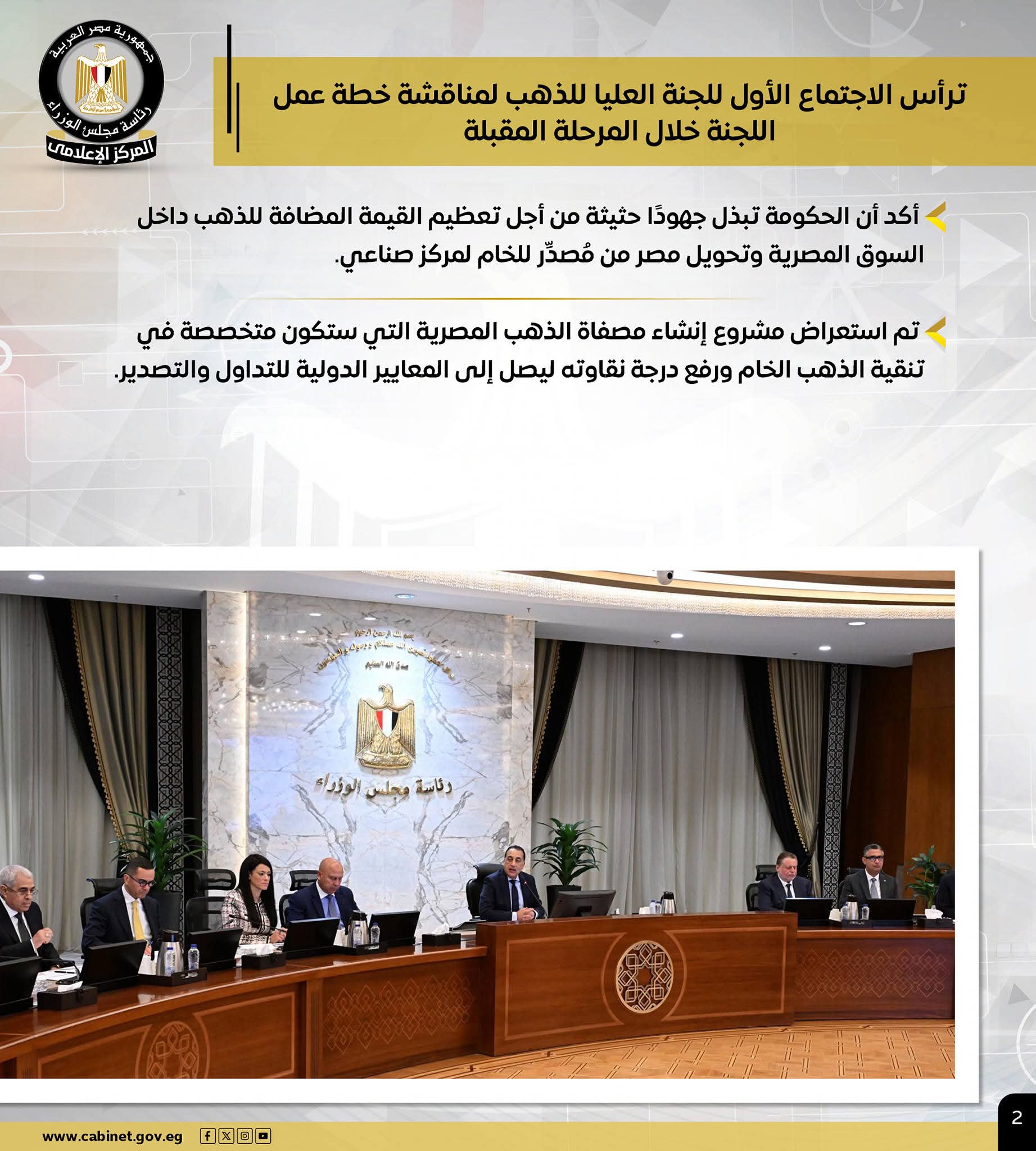 – خلال اجتماع اللجنة العليا للذهب.. رئيس الوزراء يؤكد جهود الحكومة لتعظيم القيمة المضافة للذهب داخل السوق المصرية