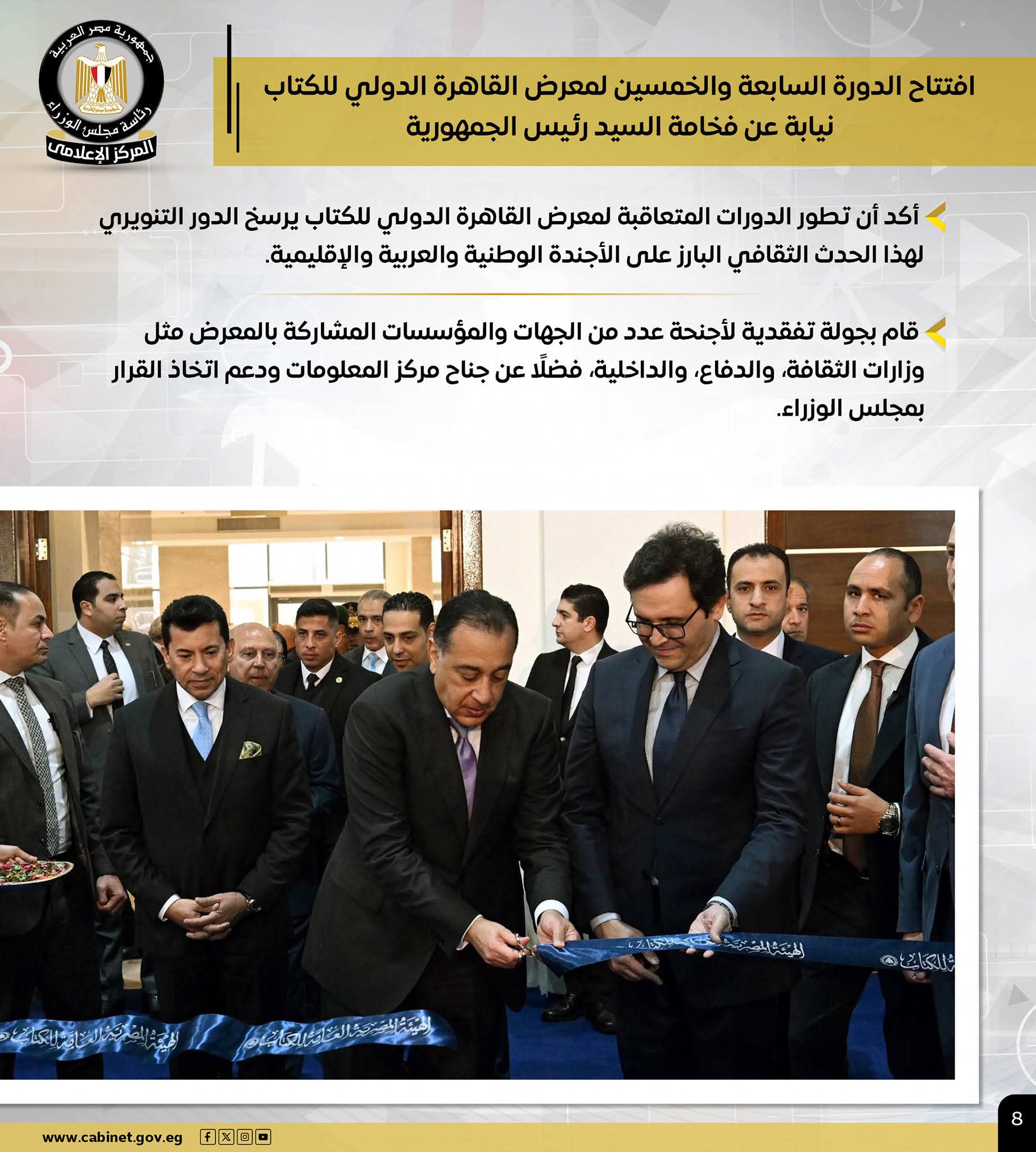 – خلال افتتاحه الدورة الـ 57 لمعرض القاهرة الدولي للكتاب.. رئيس الوزراء: تطور الدورات المتعاقبة للمعرض يرسخ الدور التنويري لهذا الحدث الثقافي البارز