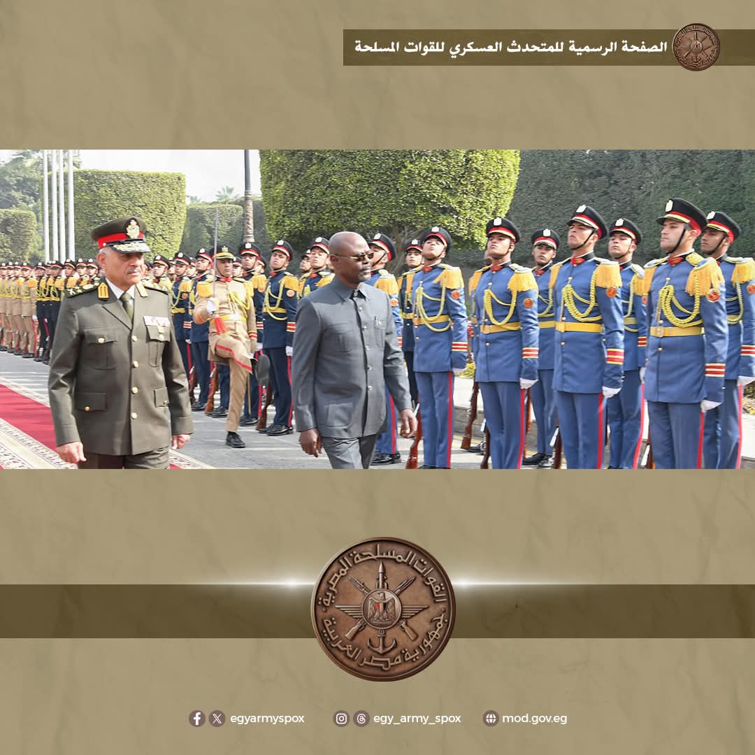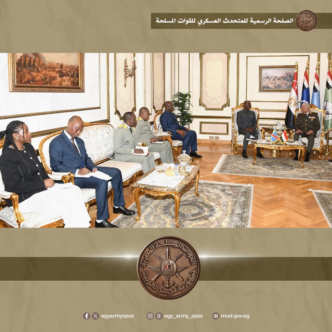 إلتقى الفريق أول / عبدالمجيد صقر القائد العام للقوات المسلحة وزير الدفاع والإنتاج الحربى السيد / جي كابومبو مواديامفيتا نائب رئيس الوزراء ووزير الدفاع الوطنى وشئون المحاربين القدامى بجمهورية الكونغو الديمقراطية والوفد المرافق له الذى يزور مصر حالياً حيث أجريت له مراسم إستقبال رسمية بمقر الأمانة العامة لوزارة الدفاع وعزفت الموسيقات العسكرية السلام الوطنى لكلا البلدين .