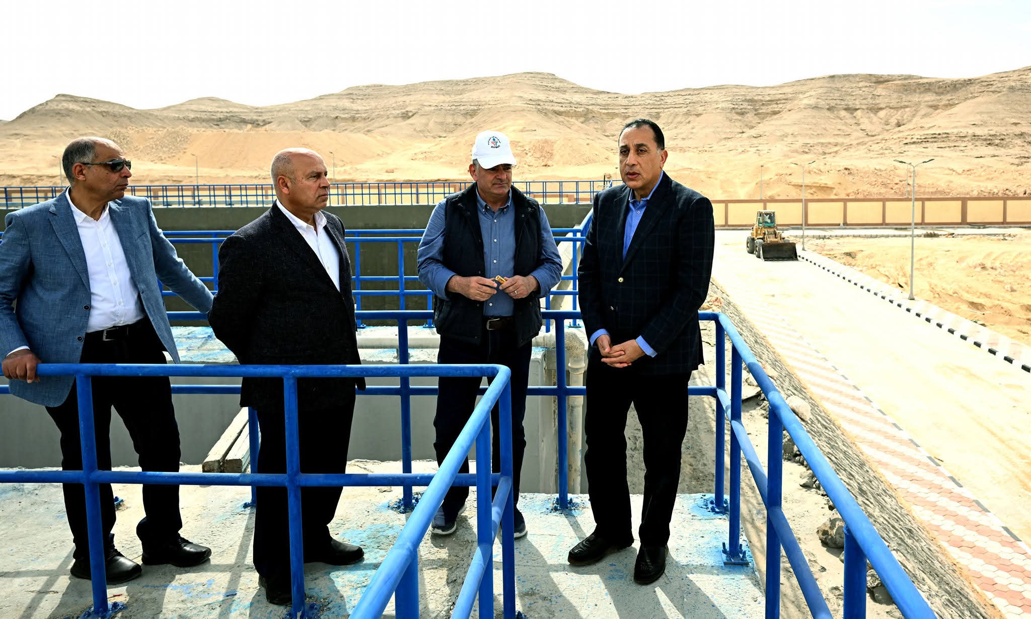 واستمع رئيس الوزراء، ومرافقوه، إلى شرح تفصيلي قدمه اللواء أمين شوقي، رئيس مجلس إدارة الهيئة القومية لمياه الشرب والصرف الصحي، موضحًا أن المشروع يمتد على مساحة تُقدَّر بـ 9.5 فدان، بطاقة إنتاجية تصل إلى 10 – 15 ألف متر مكعب يوميًا، بنسبة إنجاز متقدمة.