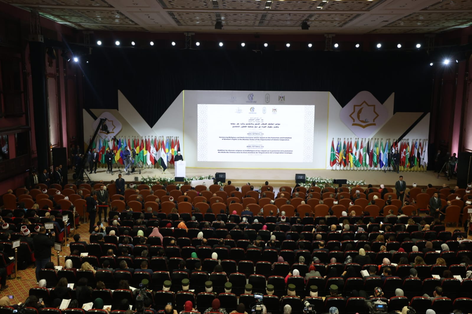 قال فضيلة الإمام الأكبر أ.د. أحمد الطيب، شيخ الأزهر الشريف، اليوم الأحد، إن المؤتمر الذي يعقده الأزهر الشريف بالتعاون مع المجلس القومي للمرأة ومنظمة تنمية المرأة (WDO)، جاءت إليه نخبة متميزة وكوكبة متفردة من علماء ومفكرين وإعلاميين ومثقفين؛ جاؤوا من أقطار شتى للمشاركة في مؤتمر: «استثمار الخطاب الديني والإعلامي وأثره على حماية وتعزيز حقوق المرأة في دول منظمة التعاون الإسلامي»، ولمناقشة قضايا المرأة المسلمة، وتقويم ما آل إليه وضعها الإنساني والحضاري في عالم اليوم.