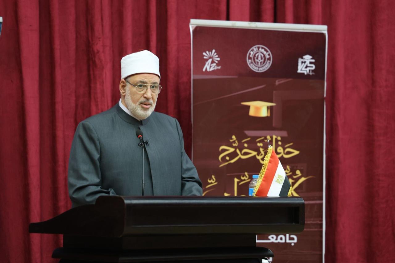 وفي ختام كلمته، قال وكيل الأزهر للخريجين إن هذا اليوم -الذي نحتفل فيه بتخرجكم- ليس نهاية المطاف بل بداية الطريق نحو ميادين الحياة العملية، وهو يوم العهد والميثاق: أن تكونوا خير سفراء للأزهر الشريف وأبنائه الأوفياء، تحملون رسالته- في نقائها وسموها- كما حملها الأولون، وتمضون بها صادقين مخلصين في خدمة دينكم ووطنكم وأمتكم.