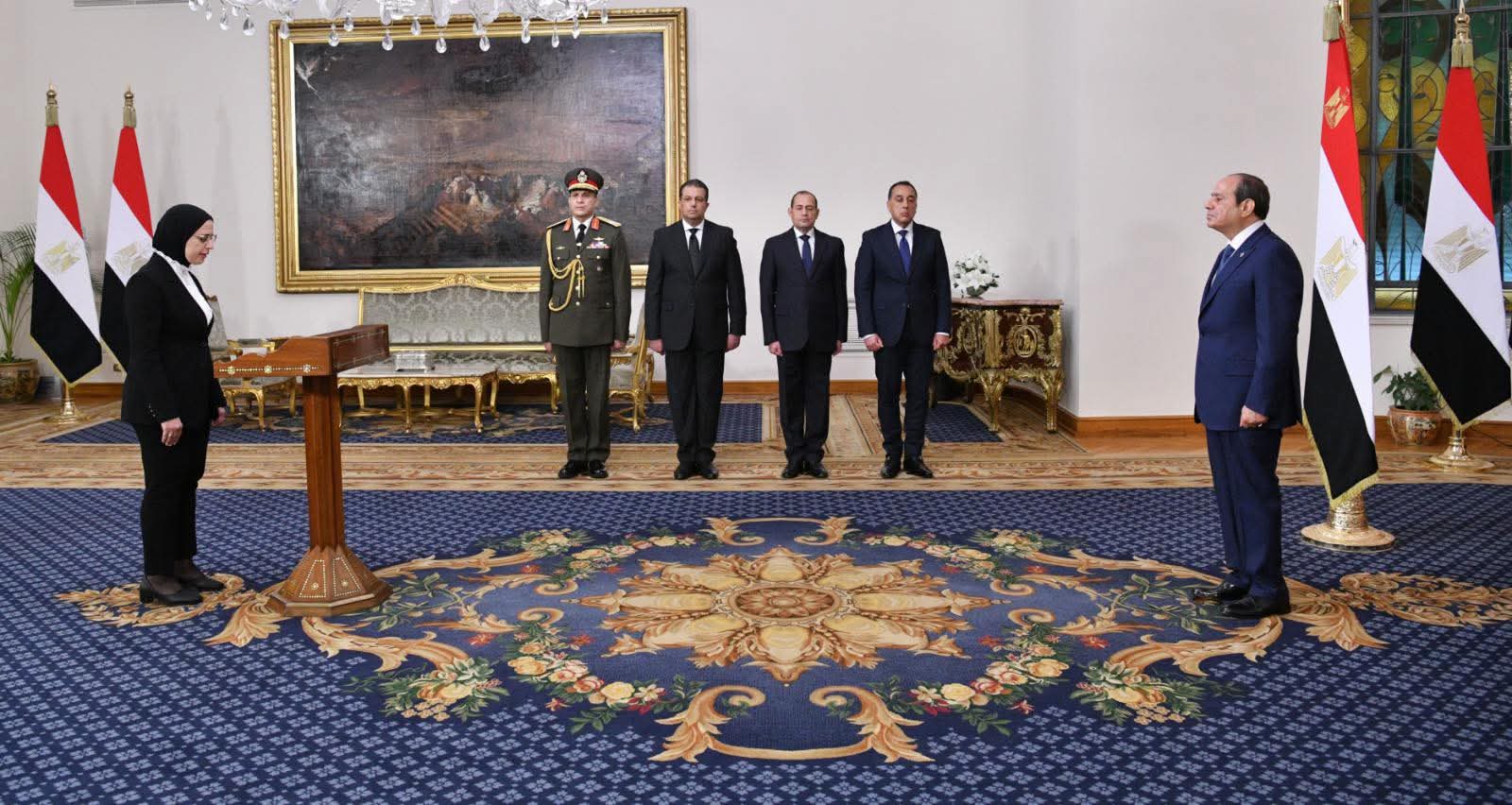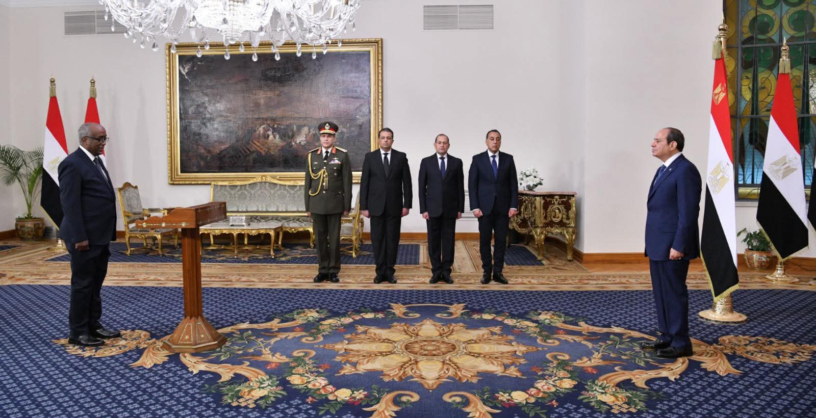 وأضاف المتحدث الرسمي، أنه عقب أداء اليمين الدستورية لنائب رئيس الوزراء والوزراء ونواب الوزراء الجدد، تم التقاط صورة تذكارية لهم مع السيد الرئيس، بحضور السيد رئيس مجلس الوزراء، وتلى ذلك عقد اجتماع للسيد الرئيس معهم، أعرب سيادته في مستهله عن تمنياته للسيد رئيس الوزراء ونائبه والسادة الوزراء ونواب الوزراء الجُدد بالتوفيق والنجاح في أداء مهامهم، مشدداً سيادته على ضرورة السعي الحثيث وبمعايير موضوعية على تحقيق الجدارة وضمان كفاءة الأداء في المؤسسات، مع إجراء نقد ومراجعة ذاتية، وتقييم موضوعي مستمر للأداء، والعمل بإصرار على الاهتمام بالعنصر البشري، وتأهيل الكوادر وفقاً لأعلى المستويات والمعايير لضمان ضخ دماء جديدة مؤهلة في أجهزة ومؤسسات الدولة، وكذا بالقطاع الخاص، مع العمل كذلك على مواصلة إجراء التطوير والإصلاح في مؤسسات وأجهزة الدولة والاستعانة تحقيقاً لهذا الغرض بالمتخصصين. وأكد السيد الرئيس على أهمية دور الإعلام في التوعية ودحض الشائعات والارتقاء بالذوق العام وتشجيع الإبداع، مشدداً على دعم سيادته للحكومة ومسئوليها في كل ما يؤدي إلى تحقيق الصالح العام.