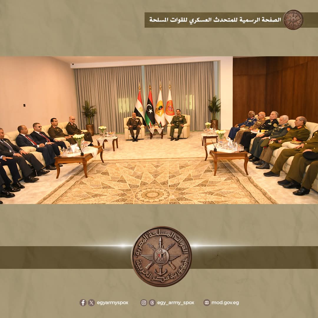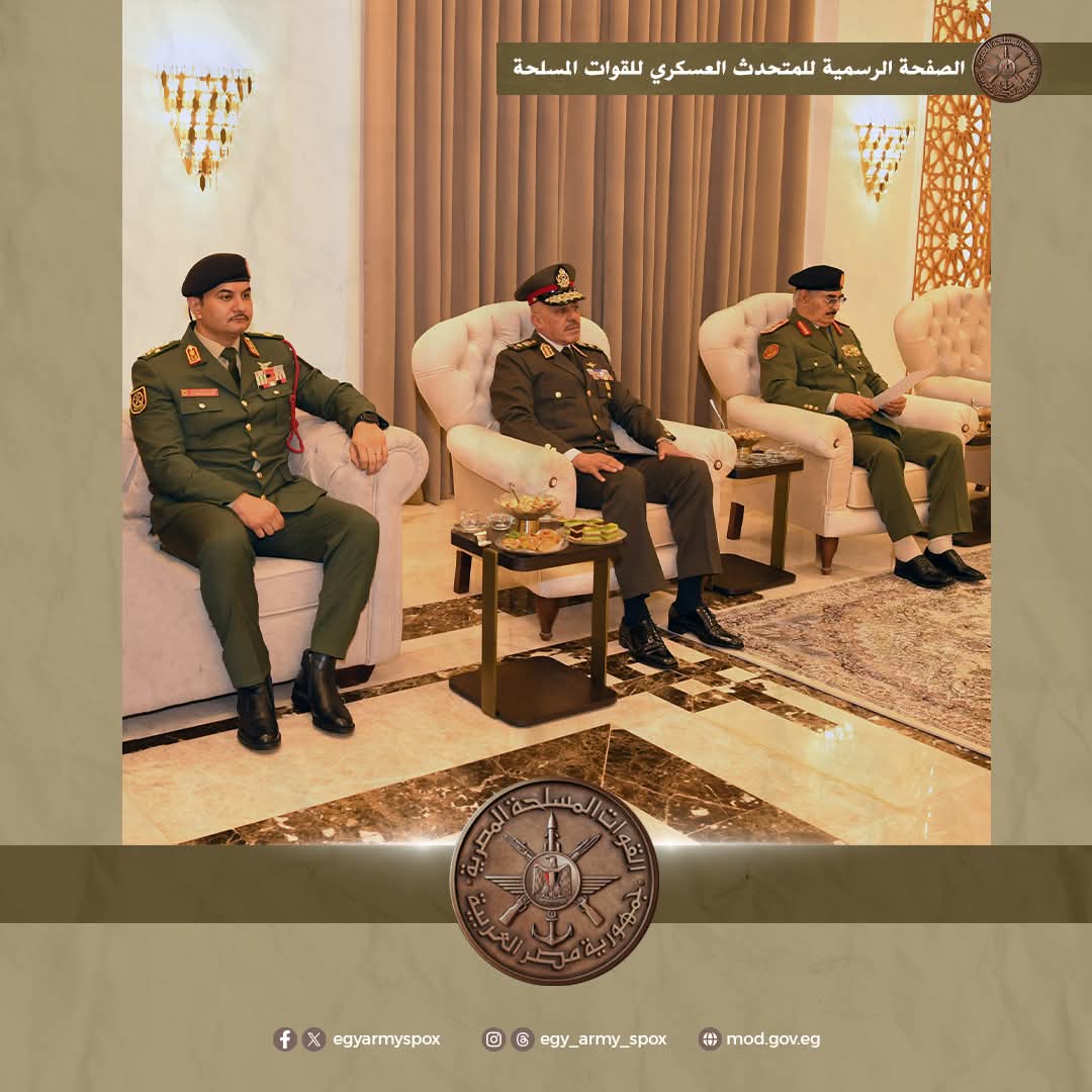 وإلتقى رئيس أركان حرب القوات المسلحة بالفريق أول ركن / خالد حفتر رئيس الأركان العامة للقوات المسلحة العربية الليبية وتناول اللقاء مناقشة سبل دعم آفاق التعاون العسكرى بحضور وفد من كلا البلدين .