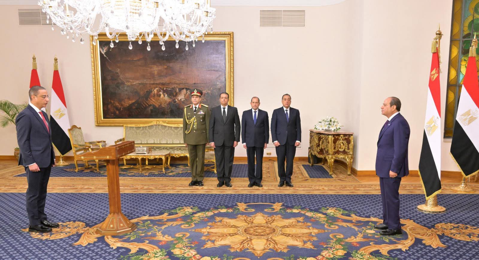 وصرّح السفير محمد الشناوي، المتحدث الرسمي باسم رئاسة الجمهورية، بأنه عقب أداء المحافظين ونوابهم الجدد اليمين الدستورية، التُقطت لهم صورة تذكارية مع السيد الرئيس. وعقب ذلك عقد السيد الرئيس اجتماعاً مع المحافظين ونوابهم الجدد، بحضور رئيس مجلس الوزراء ووزيرة التنمية المحلية والبيئة، حيث استهل سيادته اللقاء بالترحيب بهم وتقديم التهنئة، مؤكداً أهمية أن يُحسن كل محافظ استغلال ما تمتلكه محافظته من أدوات وموارد لتحقيق نتائج ملموسة تخدم الصالح العام. وشدد سيادته على الدور المحوري لكل محافظ، وضرورة العمل بإخلاص وتفانٍ بعيداً عن المجاملات، مع الإلمام بتفاصيل القضايا والمشكلات، والاستفادة من نواب المحافظين وكوادر الأجهزة التنفيذية، مع مراعاة خصوصية كل محافظة. وأوضح السيد الرئيس أن نجاح المحافظ في مهمته ينعكس مباشرة على مصلحة الدولة ككل.