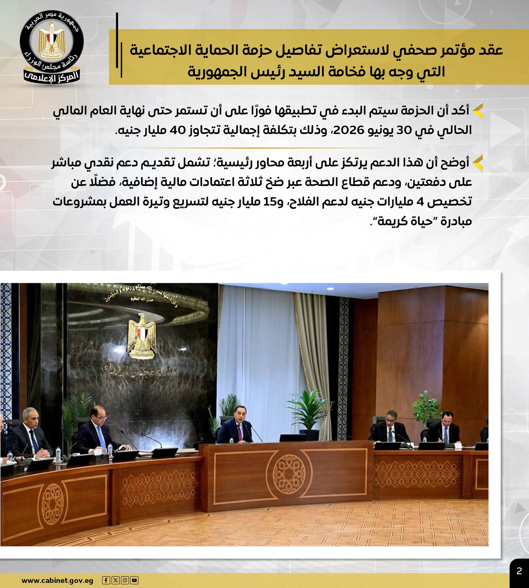 – بتكلفة تتجاوز 40 مليار جنيه.. رئيس الوزراء: تنفيذ حزمة الحماية الاجتماعية فورًا وفقًا لتوجيهات فخامة الرئيس