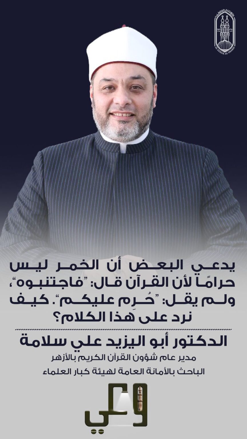 وأكد الدكتور سلامة أن القاعدة المستقرة في لغة العرب وأصول الفقه تقرر أن “الأمر بالاجتناب يفيد التحريم القطعي”، إذ إن الاجتناب يعني الابتعاد الكلي وعدم الاقتراب مطلقًا، وهو ما ينسجم مع خطورة الخمر وما تسببه من أضرار جسيمة بالعقل والدين والمجتمع، الأمر الذي جعل تحريمها من الأحكام الثابتة التي لا تقبل تأويلًا ولا تشكيكًا.