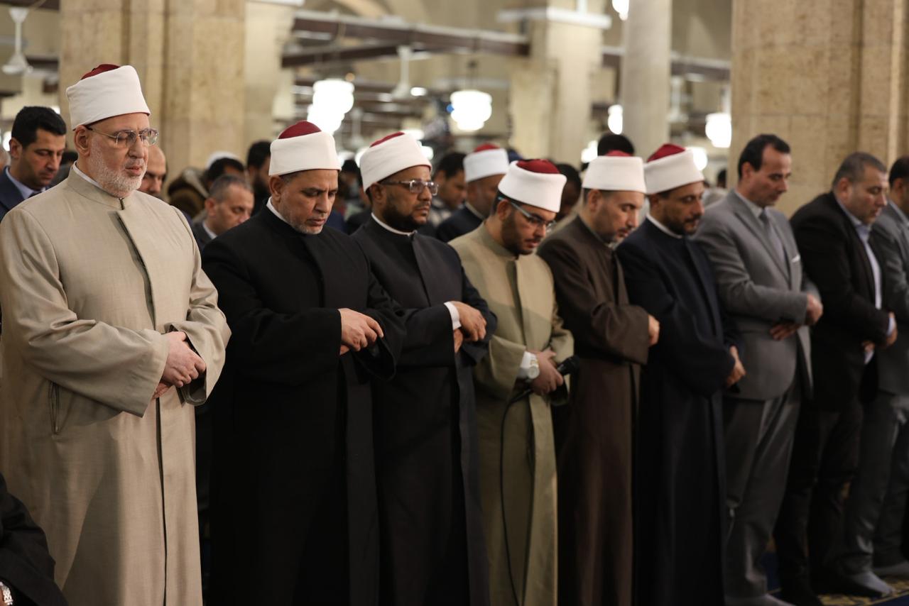 وتقدَّم صفوف المصلين فضيلة الدكتور محمد الضويني، وكيل الأزهر الشريف، وفضيلة أ.د. سلامة، رئيس جامعة الأزهر، وفضيلة أ.د. محمد الجندي، الأمين العام لمجمع البحوث الإسلامية، إلى جانب عدد من قيادات الأزهر وعلمائه.
