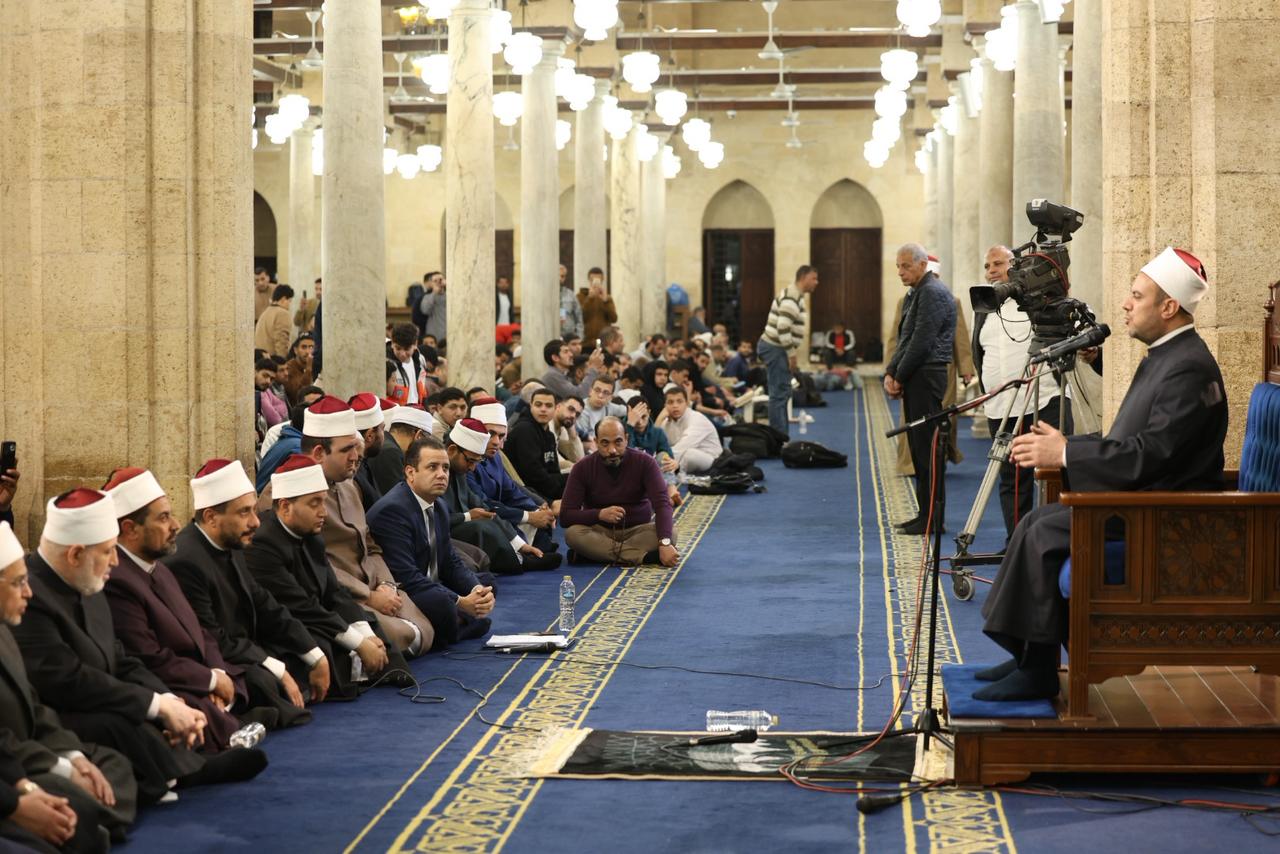 وأكد خلال الدرس أن القرآن الكريم جعل من أحداث بدر مرآةً تهتدي بها الأجيال، داعيًا إلى تقوى الله وإصلاح ذات البين، والتمسك بطاعة الله ورسوله، والتواصي بالحق والصبر، محذرًا من الفرقة والنزاع، لما فيهما من إضعاف لقوة الأمة وذهاب ريحها، مستشهدًا بقوله تعالى: ﴿وَلَا تَنَازَعُوا فَتَفْشَلُوا وَتَذْهَبَ رِيحُكُمْ وَاصْبِرُوا إِنَّ اللَّهَ مَعَ الصَّابِرِينَ﴾.