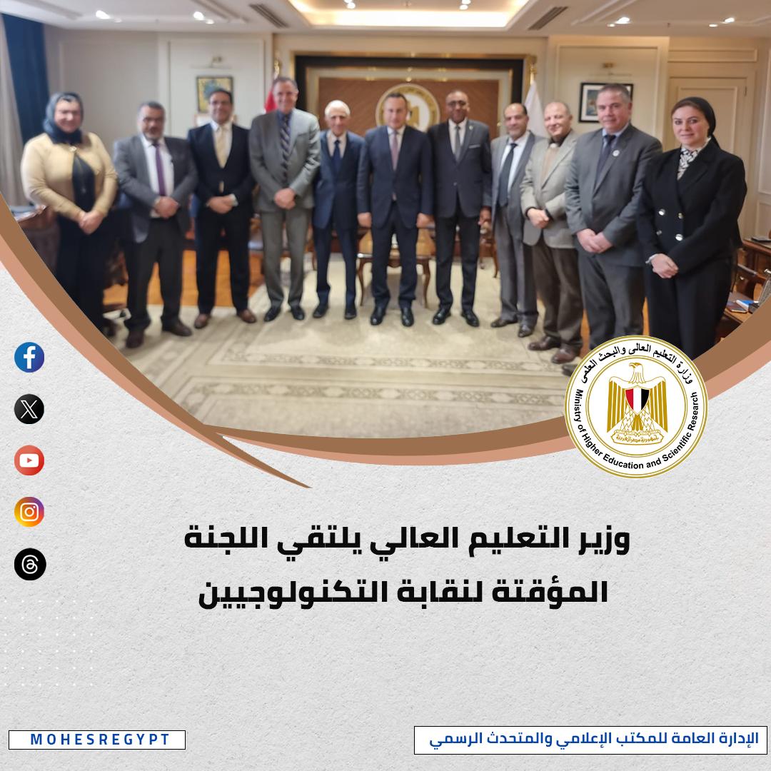 التقى الدكتور عبدالعزيز قنصوة، وزير التعليم العالي والبحث العلمي، اللجنة المؤقتة المُكلفة بوضع النظام الأساسي لنقابة التكنولوجيين، والتي وافق مجلس الوزراء على تشكيلها وفقًا لأحكام قانون نقابة التكنولوجيين رقم (13) لسنة 2024، وأكد الوزير أن الدولة تولي اهتمامًا بالغًا بالمسار التكنولوجي، سواء على المستوى الأكاديمي من خلال التوسع في إنشاء وتطوير الجامعات التكنولوجية، أو على المستوى المهني عبر إنشاء نقابة للتكنولوجيين تُنظم المهنة وتحمي حقوق أعضائها، مشددًا على أهمية الإسراع في إنجاز أعمال اللجنة المؤقتة خلال المدة المحددة قانونًا، وهي ستة أشهر من تاريخ أول انعقاد لها عقب نشر قرار تشكيلها في الجريدة الرسمية، كما شدد الوزير على ضرورة الاستفادة من الخبرات المتنوعة التي يتمتع بها أعضاء اللجنة في مختلف فروع التكنولوجيا، لوضع نظام أساسي متكامل يُواكب طبيعة المهن التكنولوجية وتطوراتها المتسارعة، تمهيدًا لدعوة الأعضاء لانتخاب أول مجلس إدارة لنقابة التكنولوجيين، بما يسهم في تنظيم المهنة وخلق بيئة داعمة للخريجين، وتوفير أفضل الظروف المهنية والاجتماعية لهم.