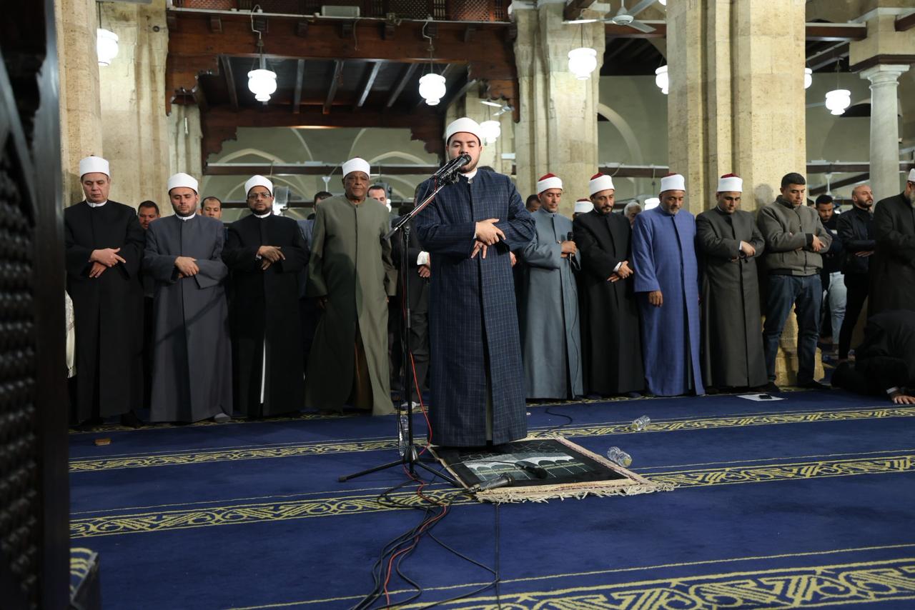 وأمَّ المصلين في صلاة العشاء الشيخ عمرو فاروق، قارئًا برواية حفص عن عاصم من آياتٍ من سورة الفرقان، وفي صلاة التراويح أمَّ المصلين الشيخ كريم مسعود برواية قالون عن نافع المدني مع قصر المنفصل ووصل ميم الجمع، قارئًا من سورة الفرقان، كما شارك في الإمامة الطالب القارئ الحسن حسام رزق -صاحب الـ16 عامًا- برواية ورش عن نافع المدني قارئًا من سورة الشعراء، في تأكيد على إتاحة الفرصة للقراء الشباب للمشاركة إلى جانب الأئمة الكبار في إحياء ليالي رمضان بالجامع الأزهر، ويعقبه الشيخ إبراهيم البحر نجاوي برواية البزي عن ابن كثير المكي قارئًا من سورة الشعراء.