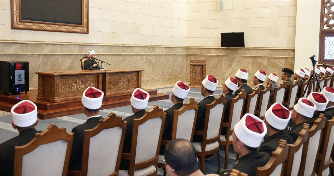 التقى الأستاذ الدكتور أسامة الأزهري، وزير الأوقاف، بأبنائه من الأئمة من حملة الدكتوراه، الملتحقين للدراسة والتدريب بالأكاديمية العسكرية المصرية، في البرنامج الدراسي التدريبي المكثف ومدته سنتان، بمسجد مصر بالعاصمة الجديدة، وذلك في إطار حرص الوزارة على دعم الكفاءات العلمية وصقل مهاراتها القيادية والفكرية، وذلك بحضور اللواء أحمد سمير، الوكيل الدائم بوزارة الأوقاف، والشيخ محمود أبو العزايم، مساعد وزير الأوقاف لشئون التدريب والمراكز الثقافية ومراكز تحفيظ القرآن الكريم، والمقدم عبد الله حسيني شهاب الدين، المشرف على الدورة من الأكاديمية العسكرية.