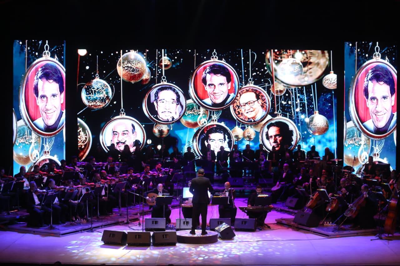 فعلى المسرح الكبير ووسط حشد جماهيرى من محبى الفنون الجادة إمتزج دفء المشاعر بالحنين لذكريات الحب الصادق الذى صورته الأعمال العبقرية لحليم وعمالقة النغم وتم اختيار نخبة منها قادها ببراعة المايسترو الدكتور محمد الموجى وأداها بإقتدار نجوم الموسيقى العربية بالأوبرا ياسر سعيد، محمد حسن، نهى حافظ، حسام حسنى أحمد عفت والعازفان حازم مجدى ( كمان ) ووليد حسن ( قانون ) كان منها التوبة، قارئة الفنجان، خايف مرة أحب، لست قلبى، دويتو حاجة غريبة، بكرة وبعده، موسيقى دويتو احتار خيالى، بأمر الحب، دويتو تعالى أقولك، جبار وميدلى حليم رؤية وإعداد قائد الحفل المايسترو الدكتور محمد الموجى .